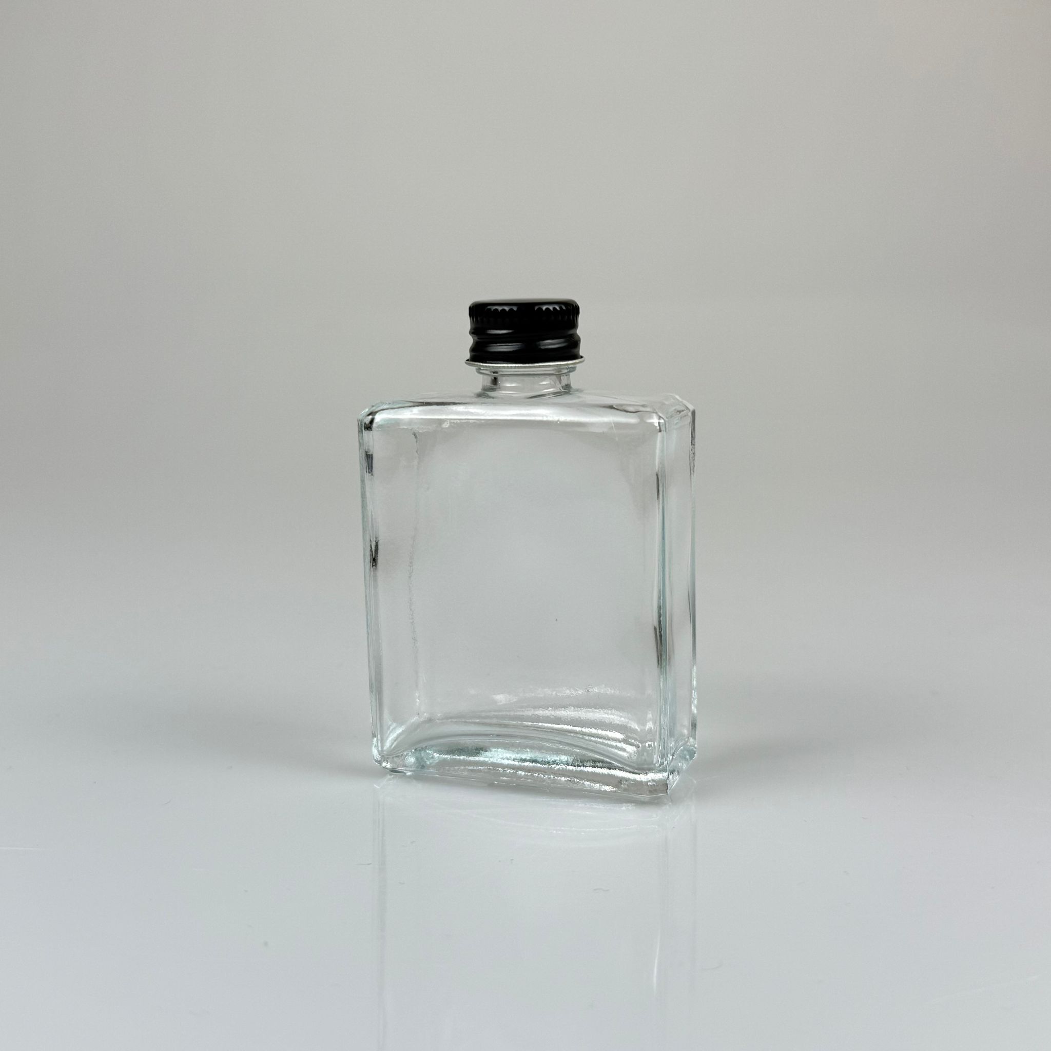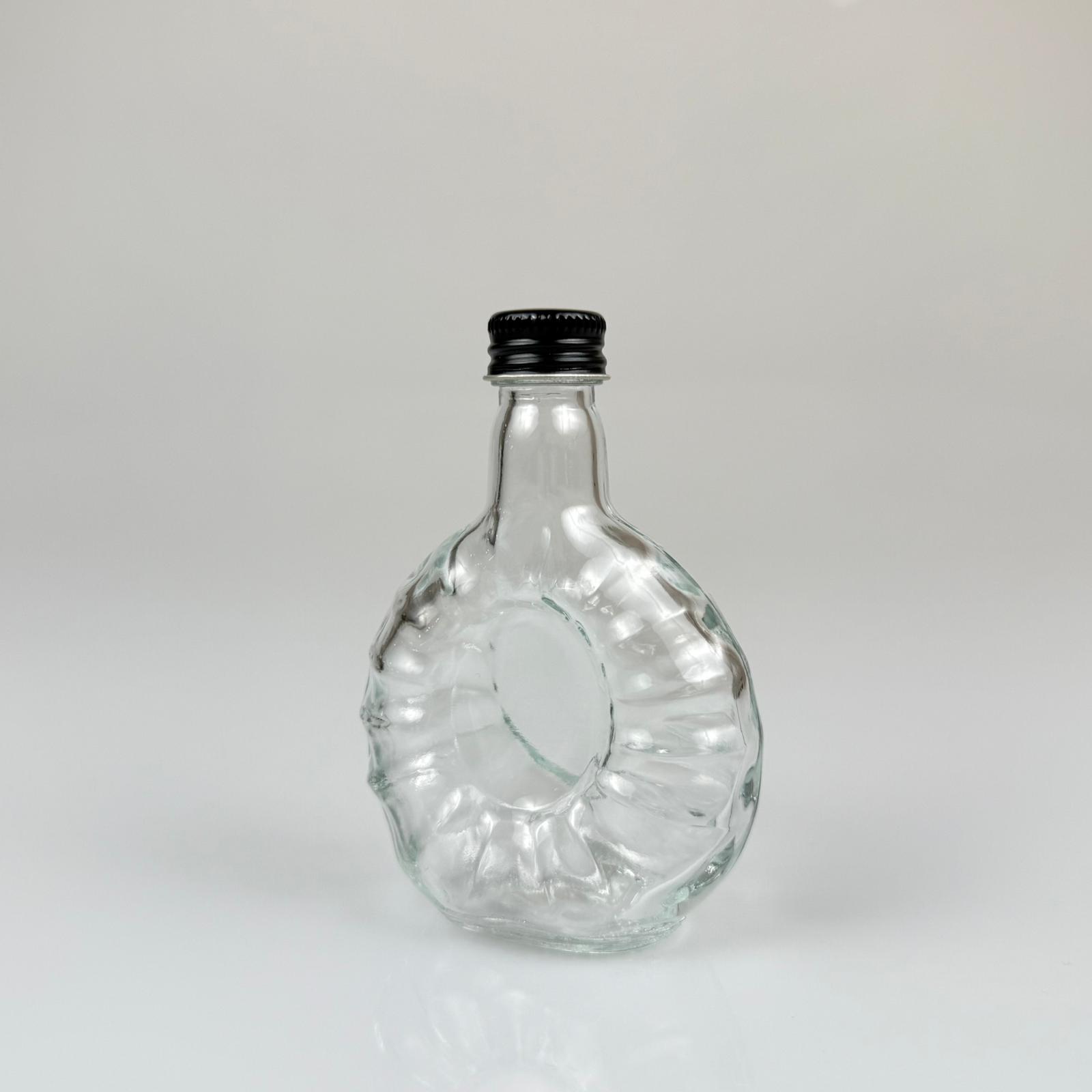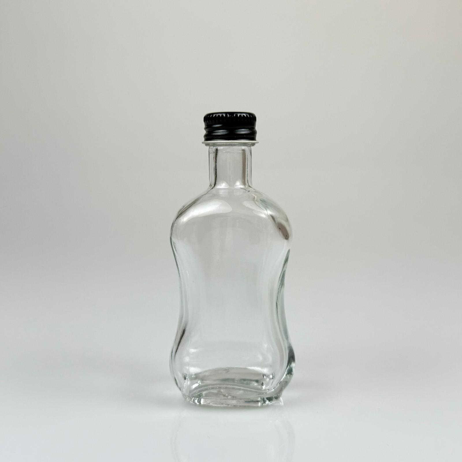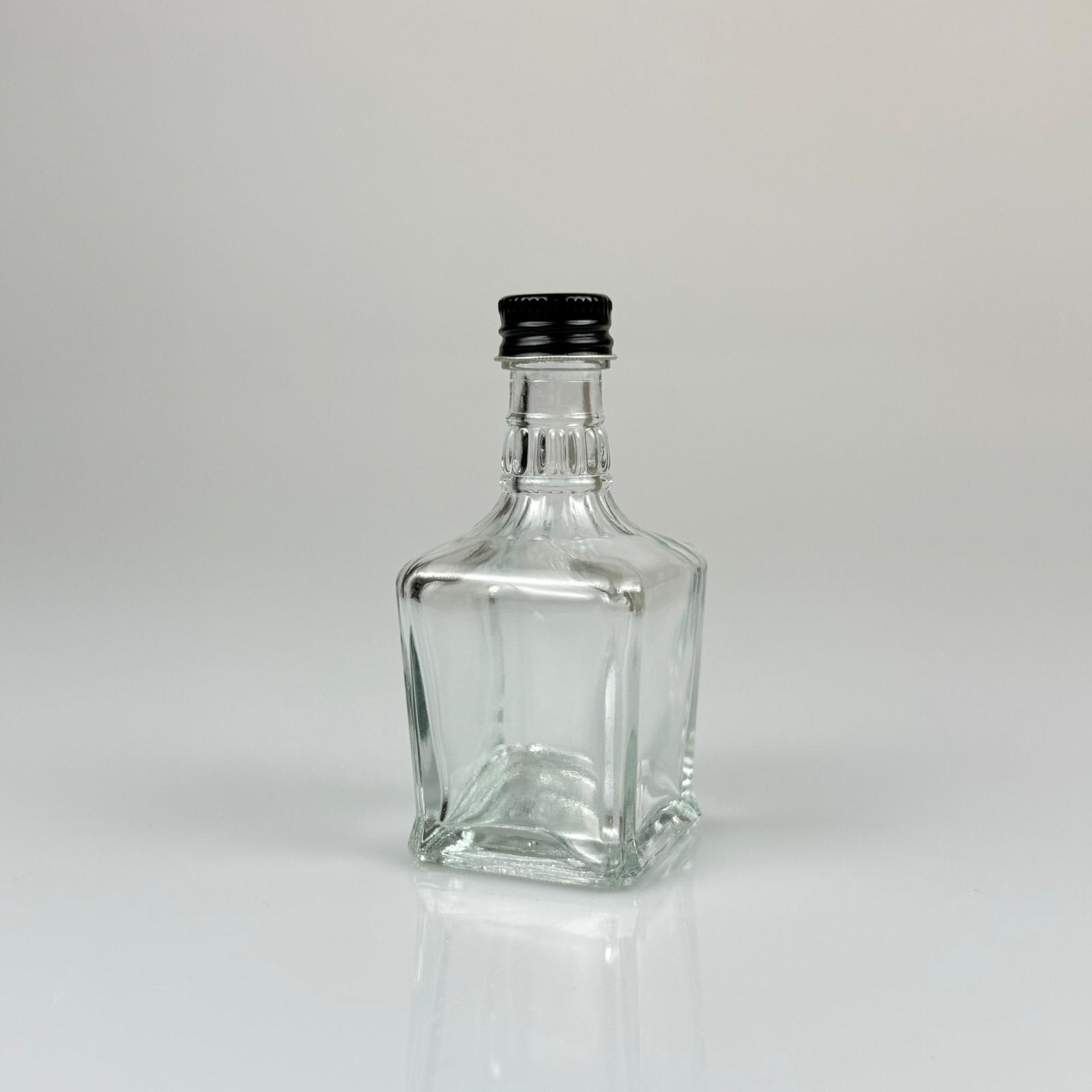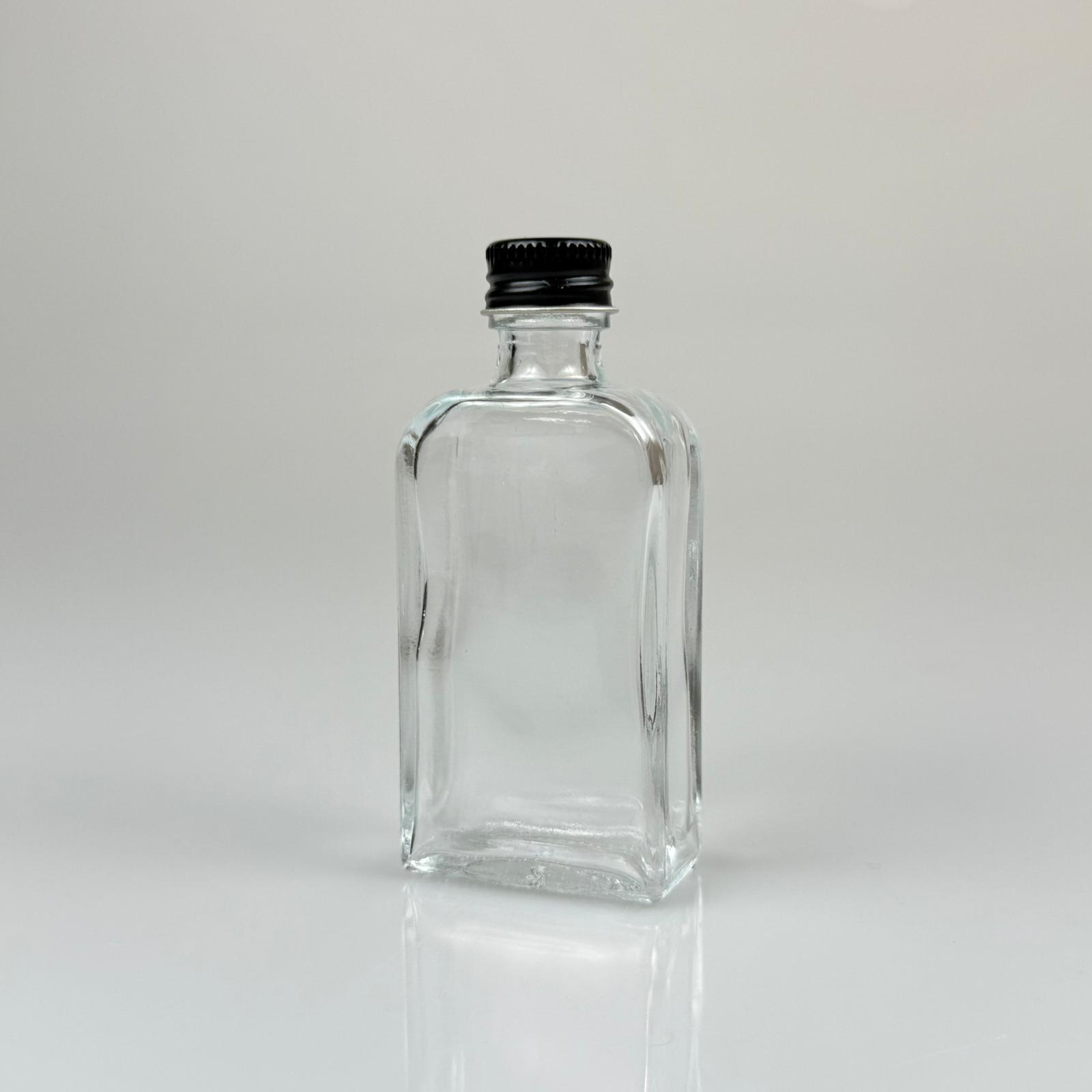 50 CC BOĞAZLI YASSI CAM ŞİŞE - SİYAH METAL KAPAKLI - 50 ML PRESTİJLİ ŞİŞE