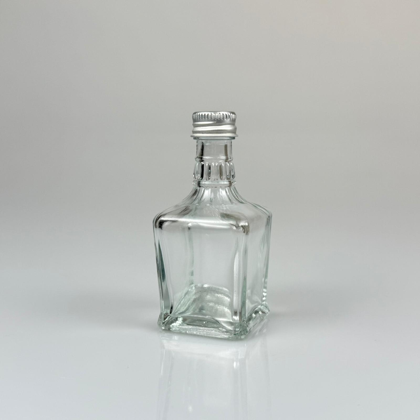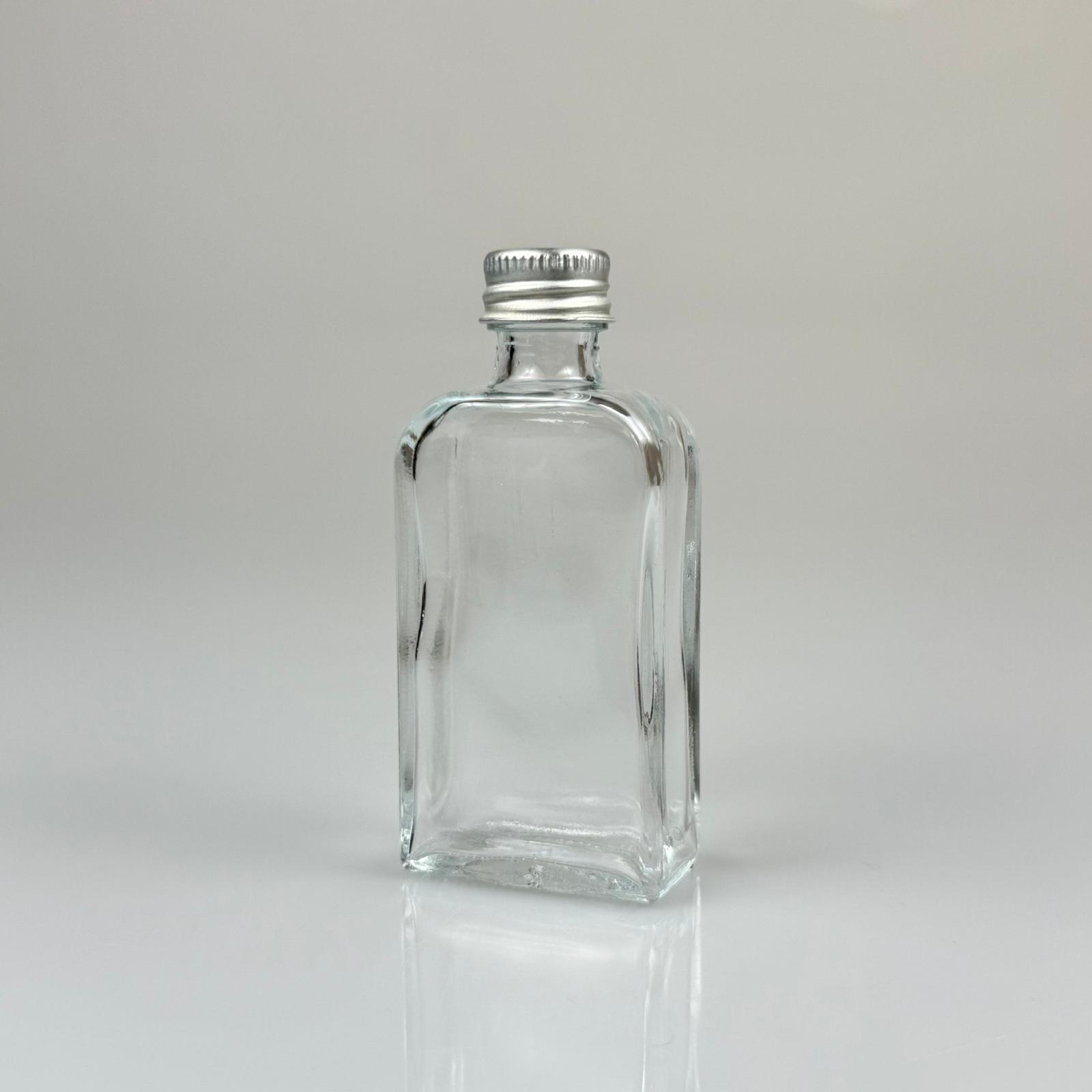 50 CC BOĞAZLI YASSI CAM ŞİŞE - GÜMÜŞ METAL KAPAKLI - 50 ML PRESTİJLİ ŞİŞE