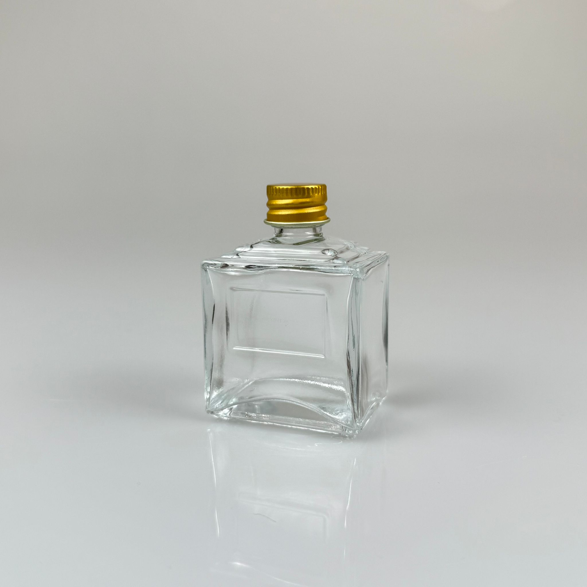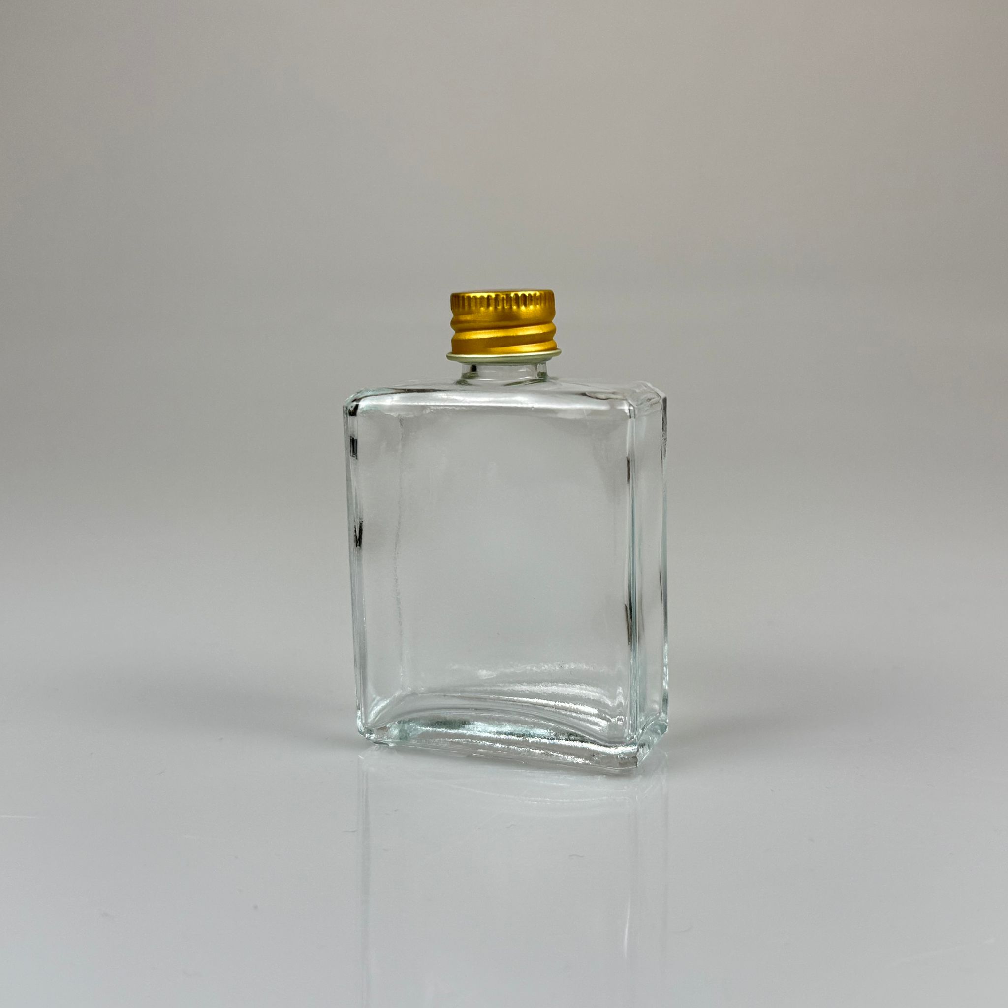 40 CC YASSI DİKDÖRTGEN KÖŞELİ KISA CAM ŞİŞE - GOLD METAL KAPAKLI - 40 ML PRESTİJLİ ŞİŞE