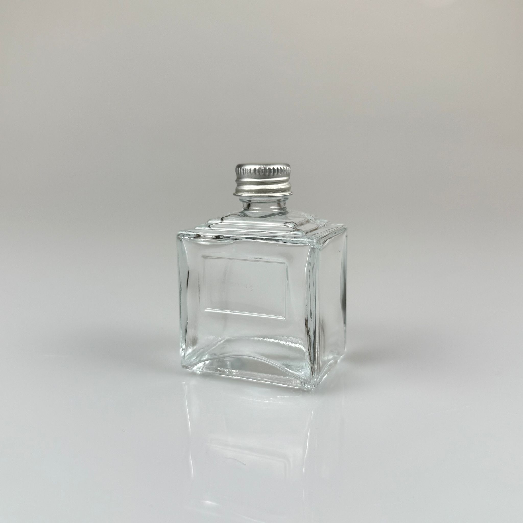 50 CC KÖŞELİ PRİZMA CAM ŞİŞE - GÜMÜŞ METAL KAPAKLI - 50 ML PRESTİJLİ ŞİŞE