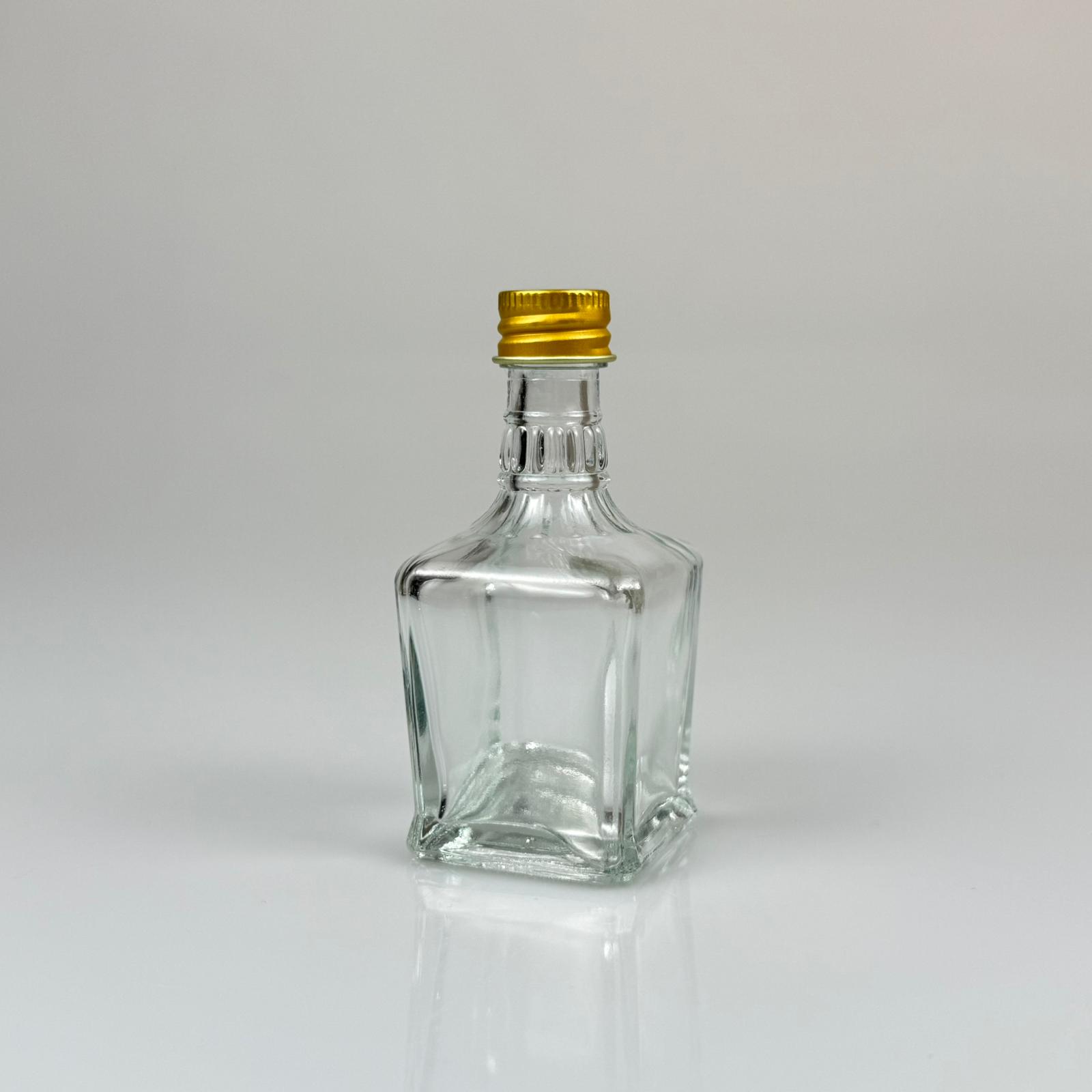 50 CC BOĞAZLI YASSI CAM ŞİŞE - GOLD METAL KAPAKLI - 50 ML PRESTİJLİ ŞİŞE