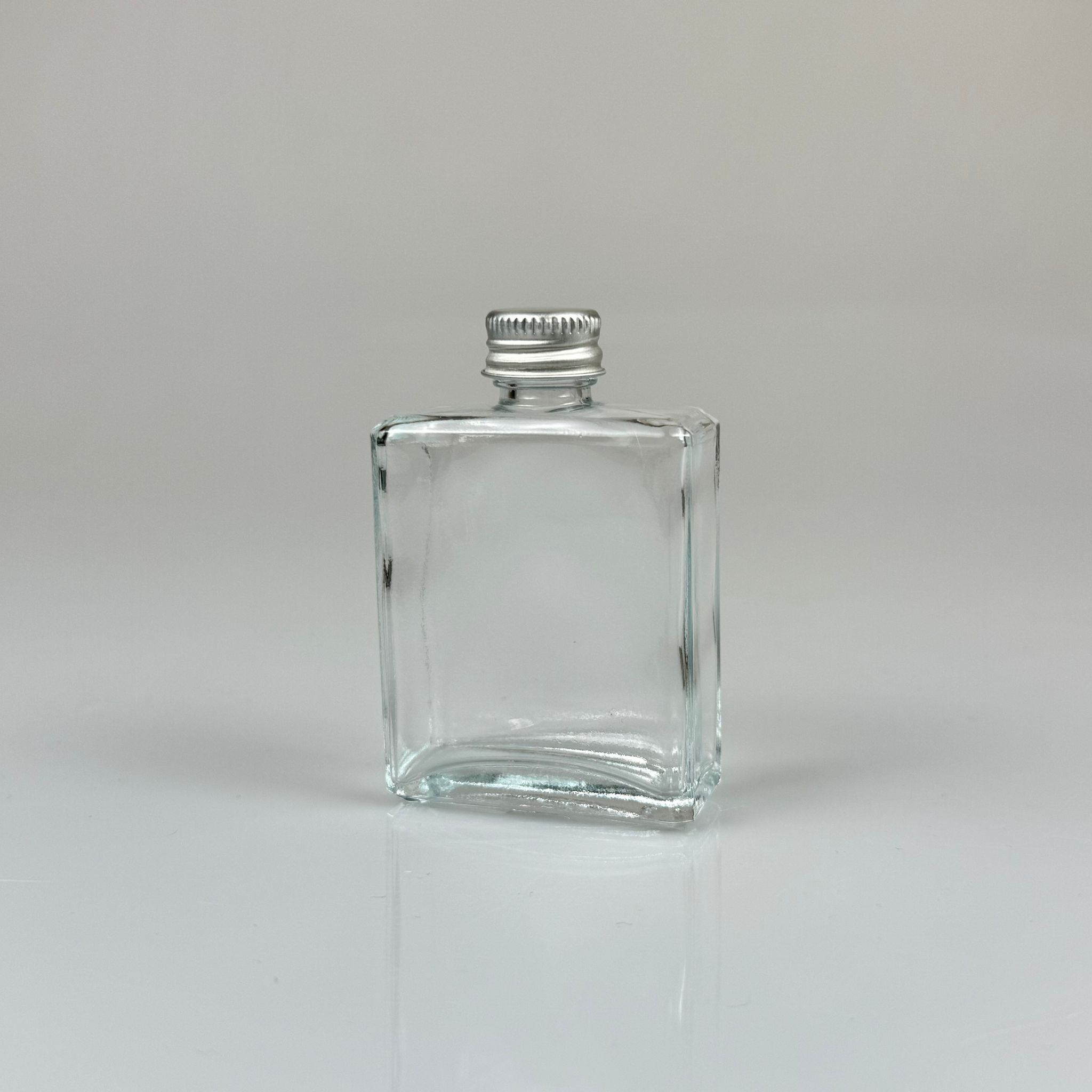 50 CC YASSI DİKDÖRTGEN CAM ŞİŞE - GÜMÜŞ METAL KAPAKLI - 50 ML PRESTİJLİ ŞİŞE