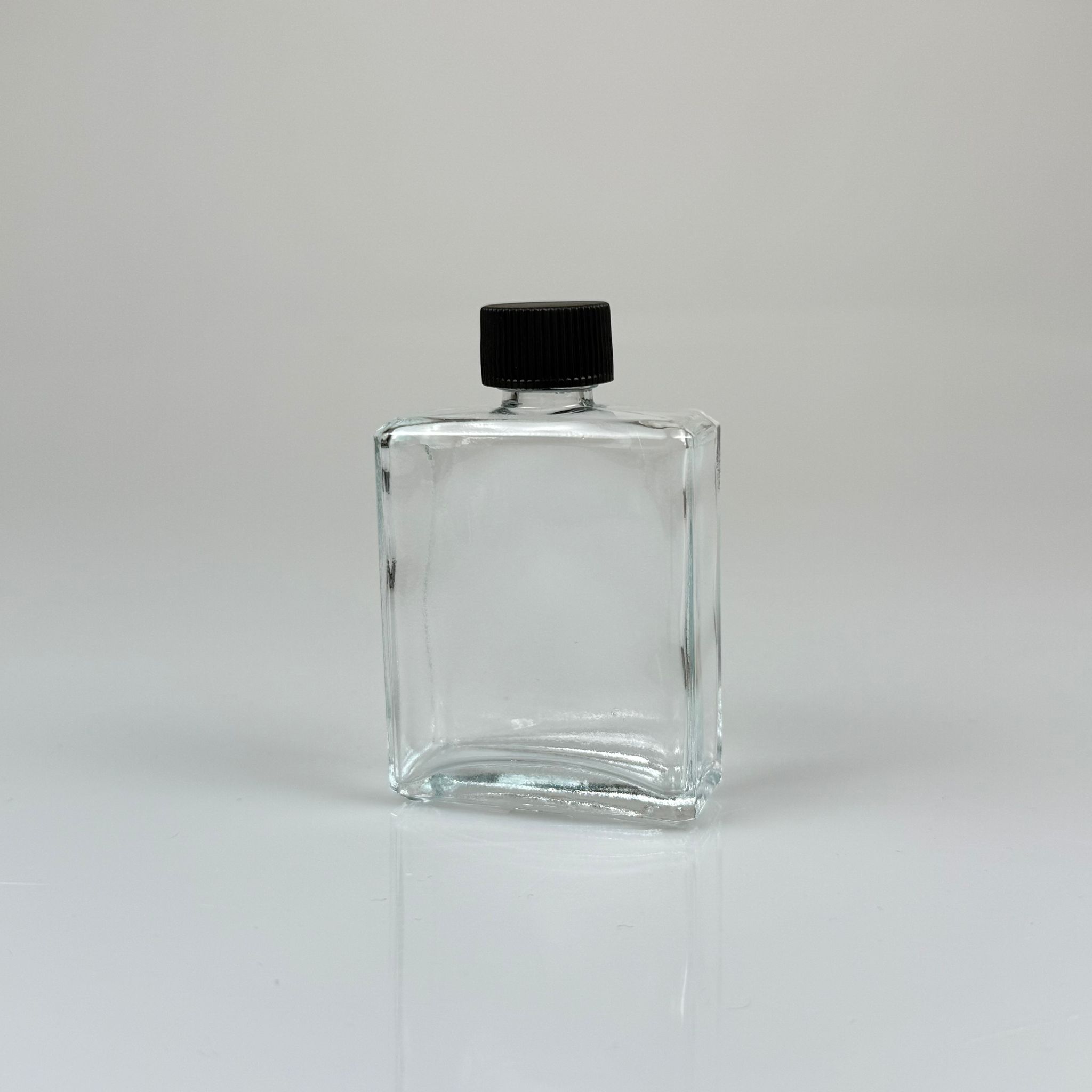 40 CC YASSI DİKDÖRTGEN KÖŞELİ KISA CAM ŞİŞE - SİYAH PLASTİK KAPAKLI - 40 ML PRESTİJLİ ŞİŞE