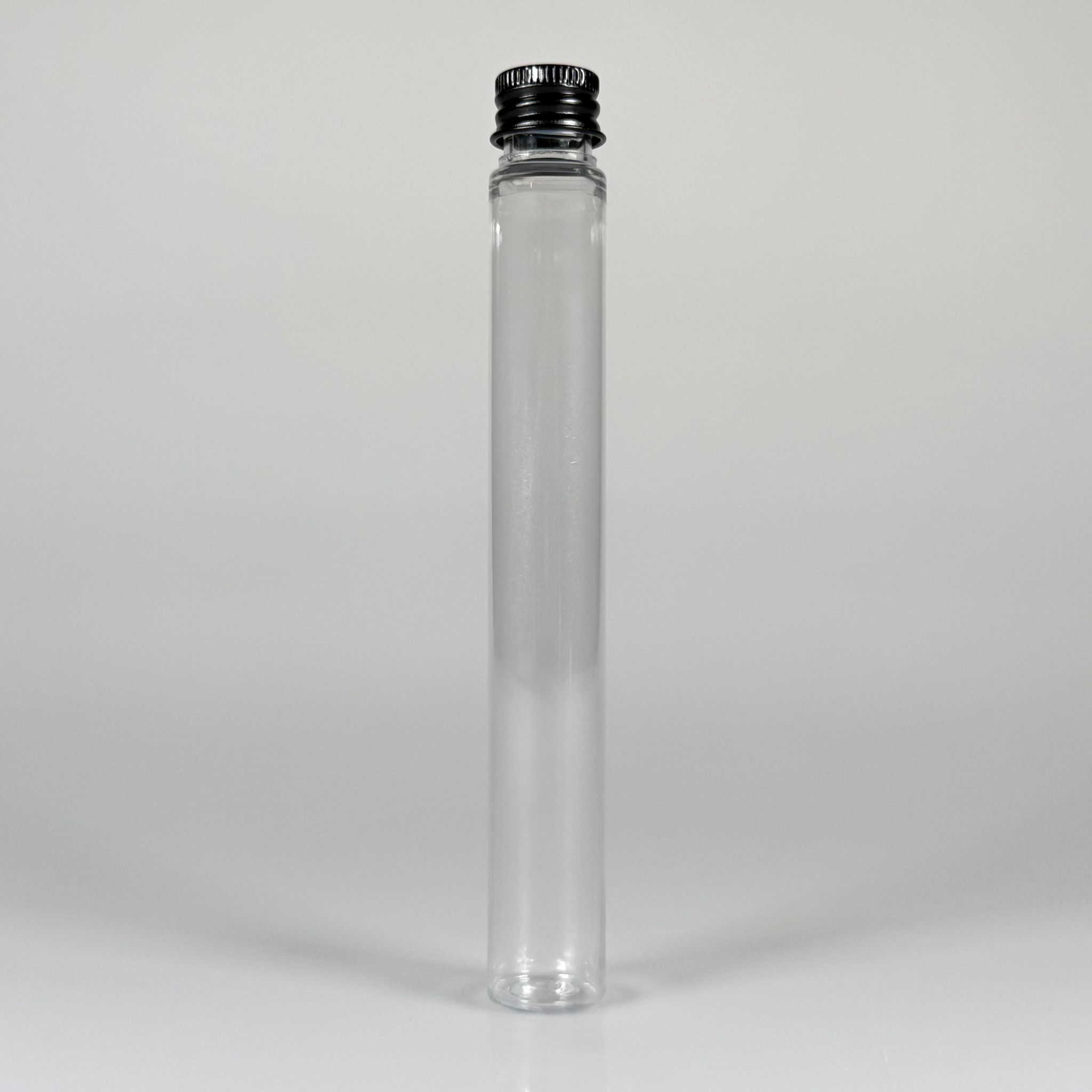 16 CM TÜP - 45 CC UZUN İNCE PET ŞİŞE - CONTALI SİYAH METAL KAPAKLI - VANİLYA ÇUBUĞU, BAHARAT, DENEY TÜPÜ VB İÇİN PLASTİK TÜP