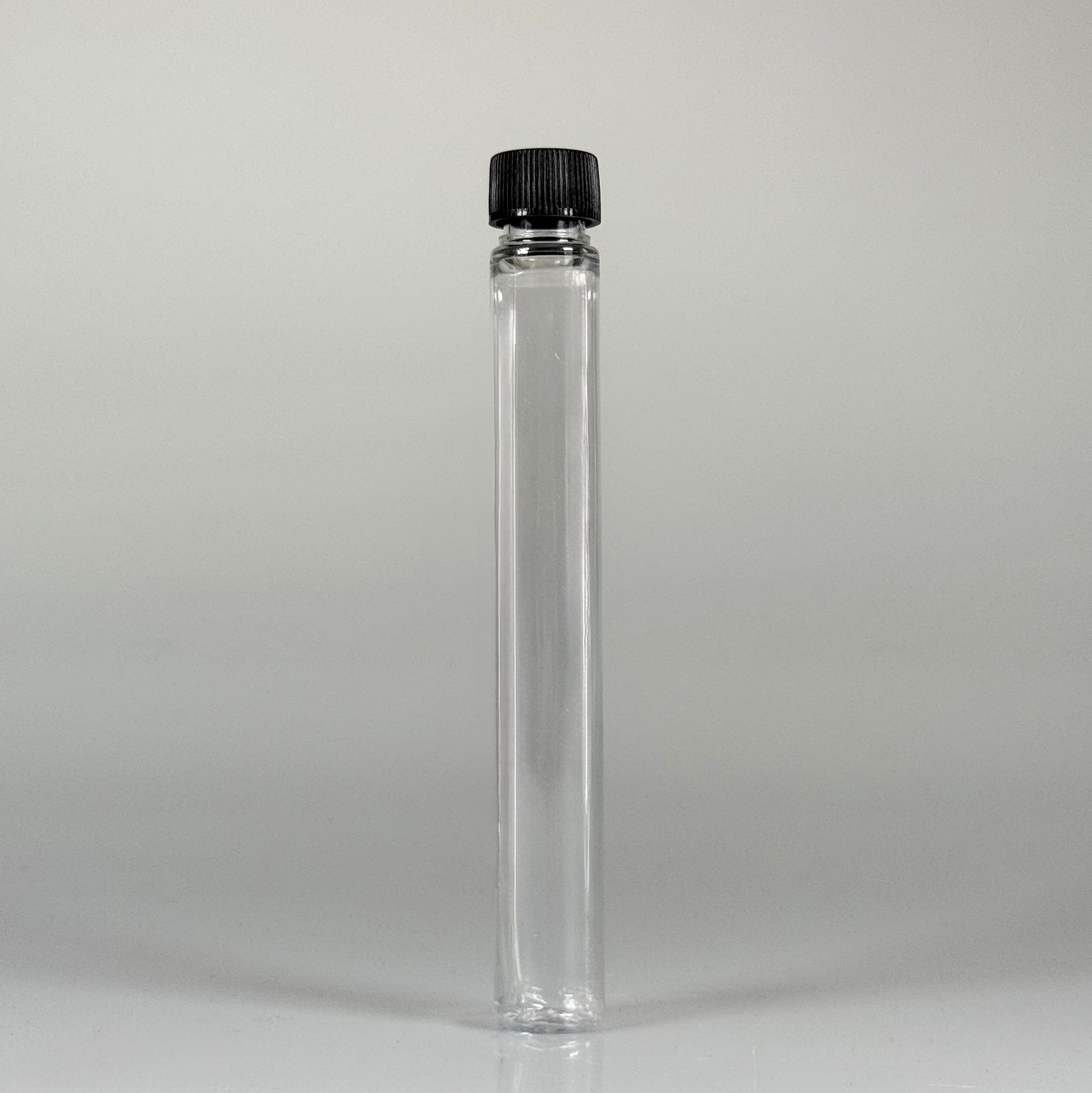 16 CM TÜP - 45 CC UZUN İNCE PET ŞİŞE - CONTALI SİYAH KAPAKLI - VANİLYA ÇUBUĞU, BAHARAT, DENEY TÜPÜ VB İÇİN PLASTİK TÜP