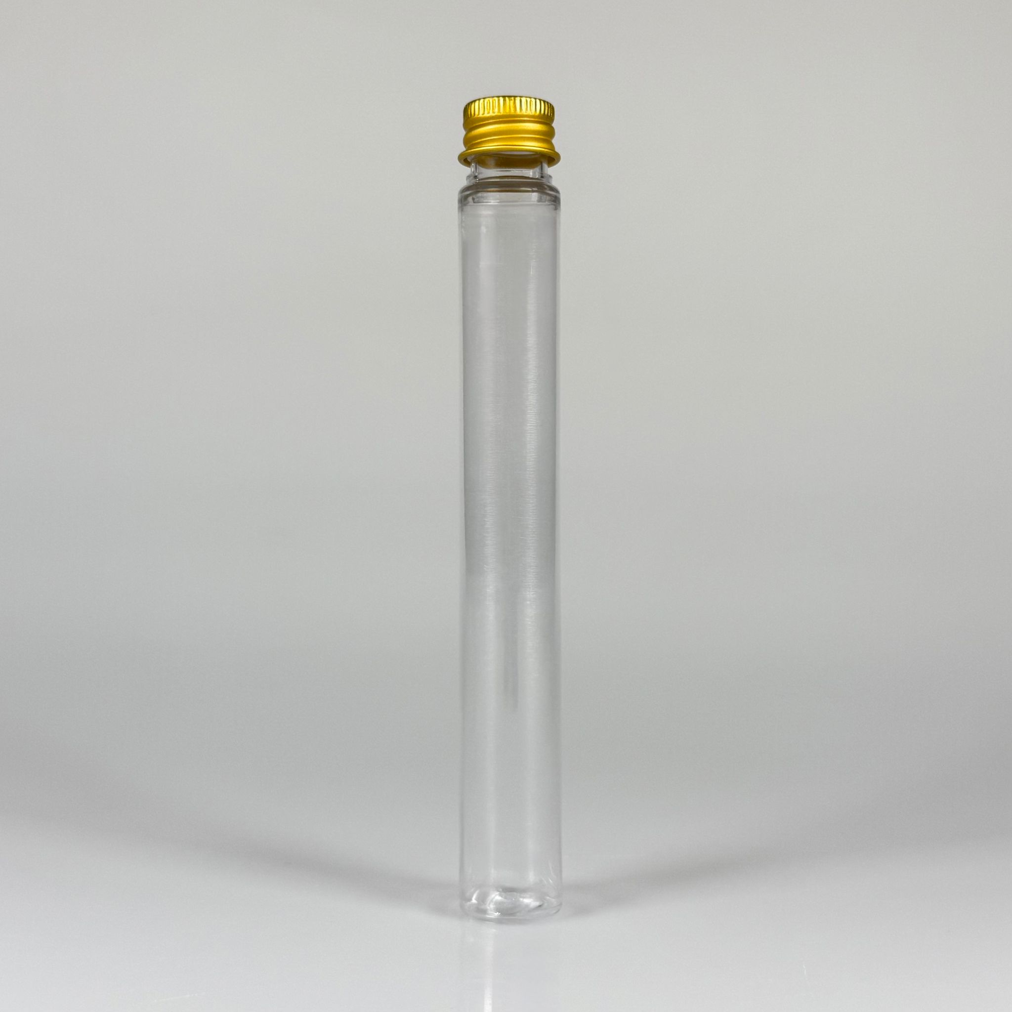 16 CM TÜP - 45 CC UZUN İNCE PET ŞİŞE - CONTALI GOLD METAL KAPAKLI - VANİLYA ÇUBUĞU, BAHARAT, DENEY TÜPÜ VB İÇİN PLASTİK TÜP