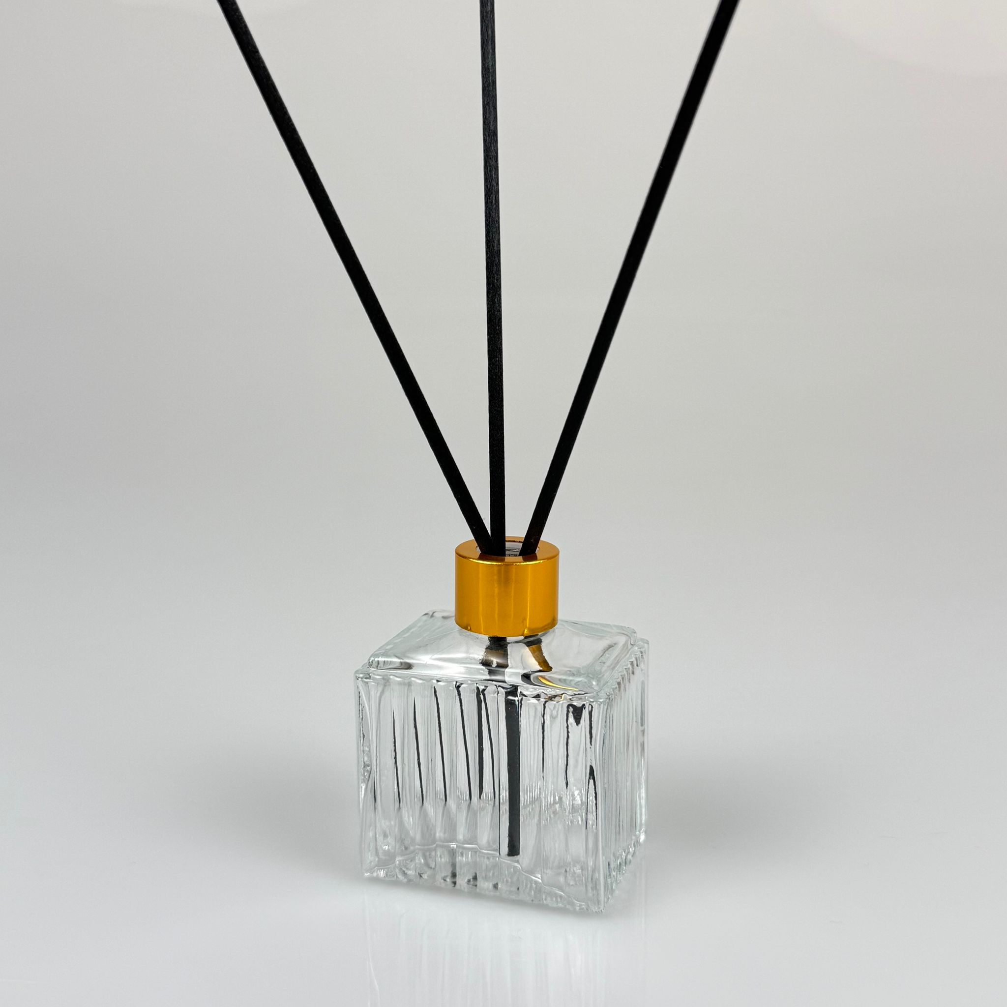 50 CC KÖŞELİ DESENLİ ÇİZGİLİ PRESTİJ CAM BAMBU ODA KOKUSU ŞİŞESİ - 50 ML ÇUBUKLU BAMBU ODA KOKUSU ŞİŞESİ - DİFÜZÖR ŞİŞE- CAM ŞİŞE + GOLD METAL KAPAK + PLASTİK TIPA + 3 ADET FİBER SİYAH BAMBU ÇUBUK