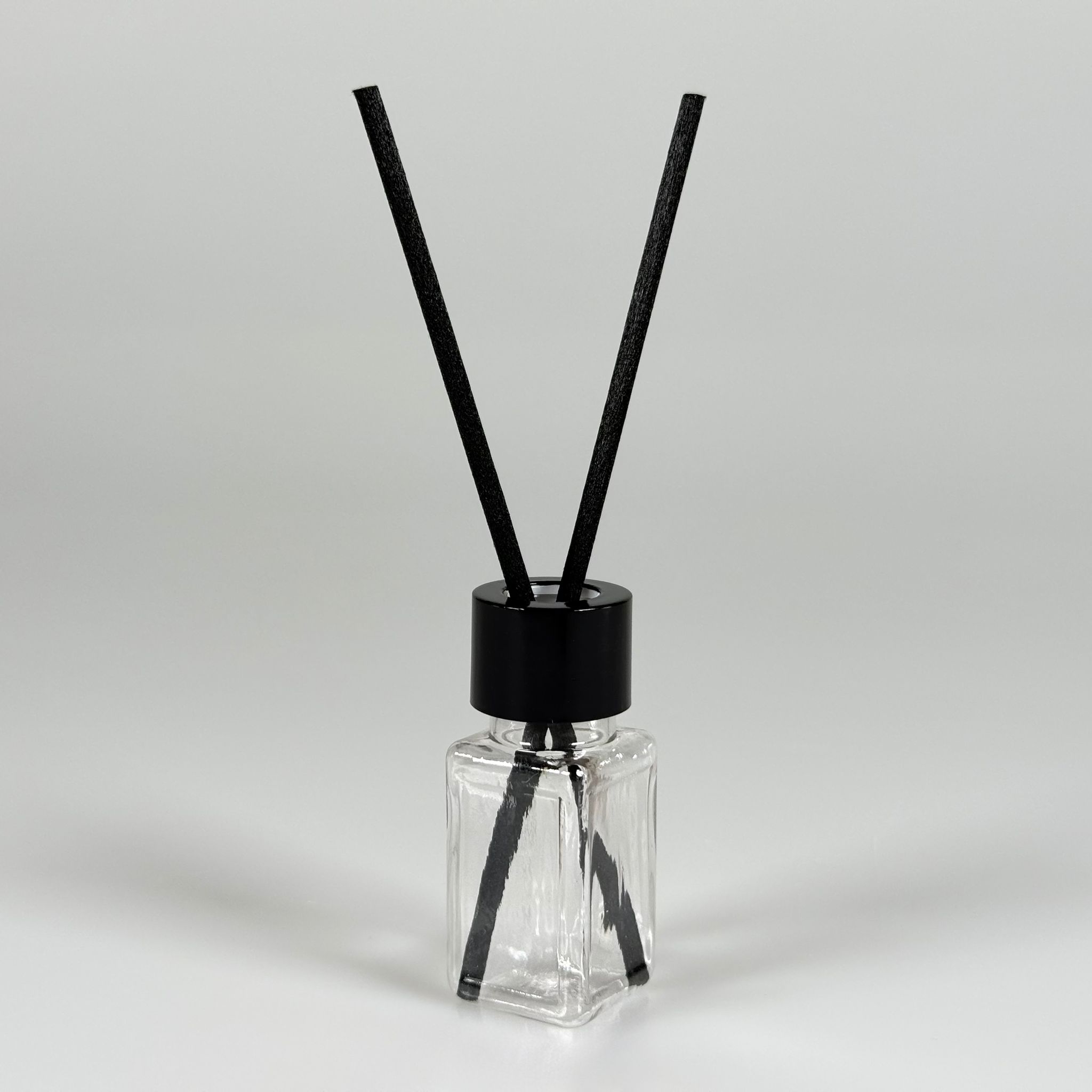 PLASTİK PET DİFÜZÖR ODA KOKUSU BAMBU ŞİŞESİ - 10 ML KARE - ŞİŞE + SİYAH METAL KAPAK + TIPA + 24 CM FİBER ÇUBUK