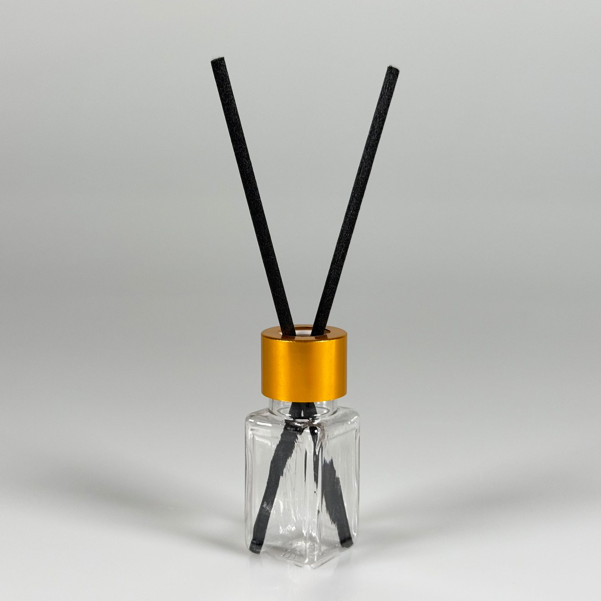 PLASTİK PET DİFÜZÖR ODA KOKUSU BAMBU ŞİŞESİ - 10 ML KARE - ŞİŞE + GOLD METAL KAPAK + TIPA + 24 CM FİBER ÇUBUK
