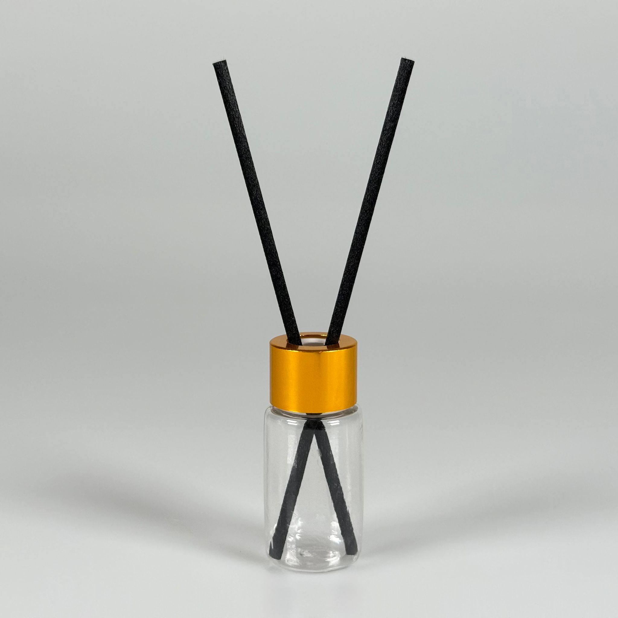 PLASTİK PET DİFÜZÖR ODA KOKUSU BAMBU ŞİŞESİ - 10 ML SİLİNDİR - ŞİŞE + GOLD METAL KAPAK + TIPA + 24 CM FİBER ÇUBUK