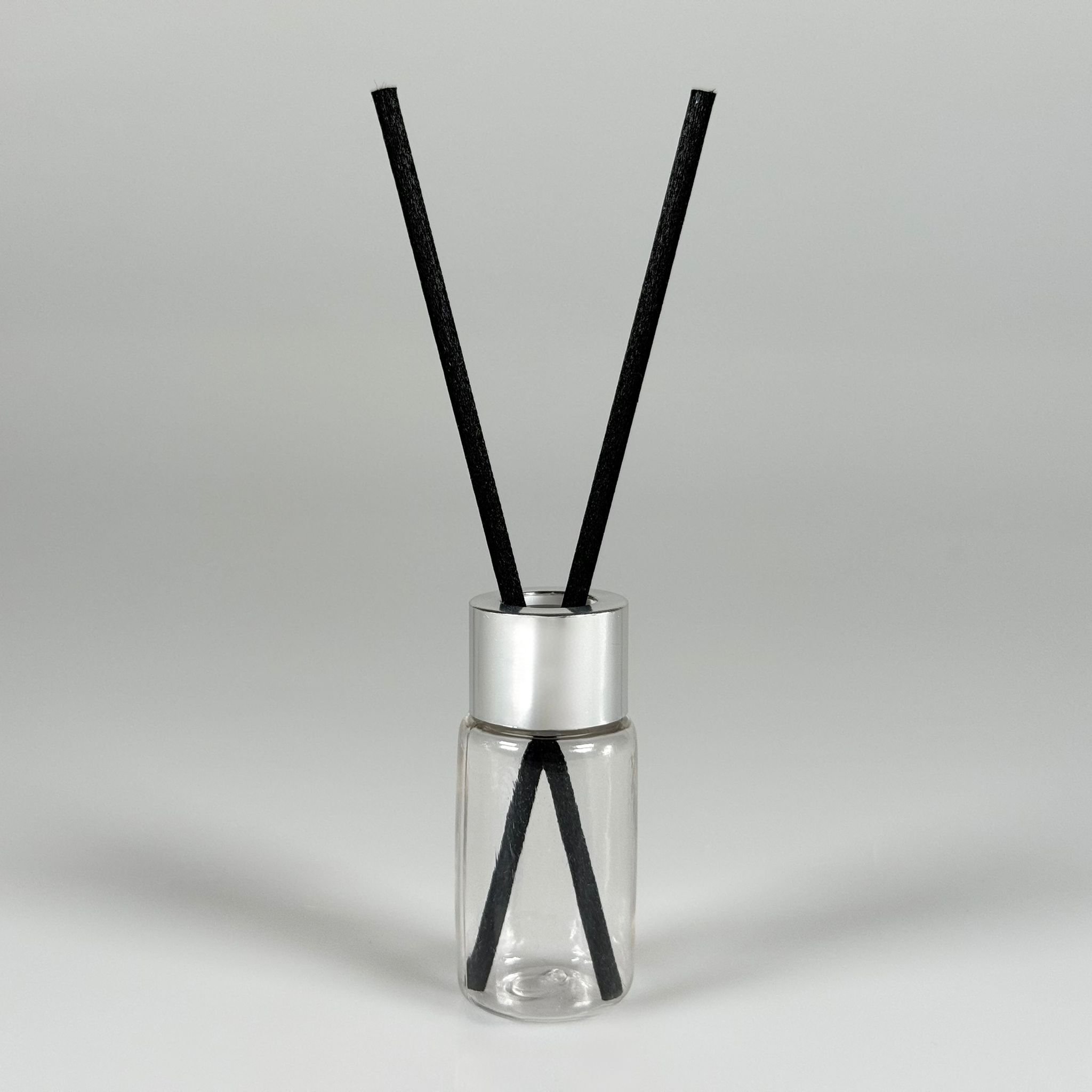 PLASTİK PET DİFÜZÖR ODA KOKUSU BAMBU ŞİŞESİ - 10 ML SİLİNDİR - ŞİŞE + GÜMÜŞ METAL KAPAK + TIPA + 24 CM FİBER ÇUBUK