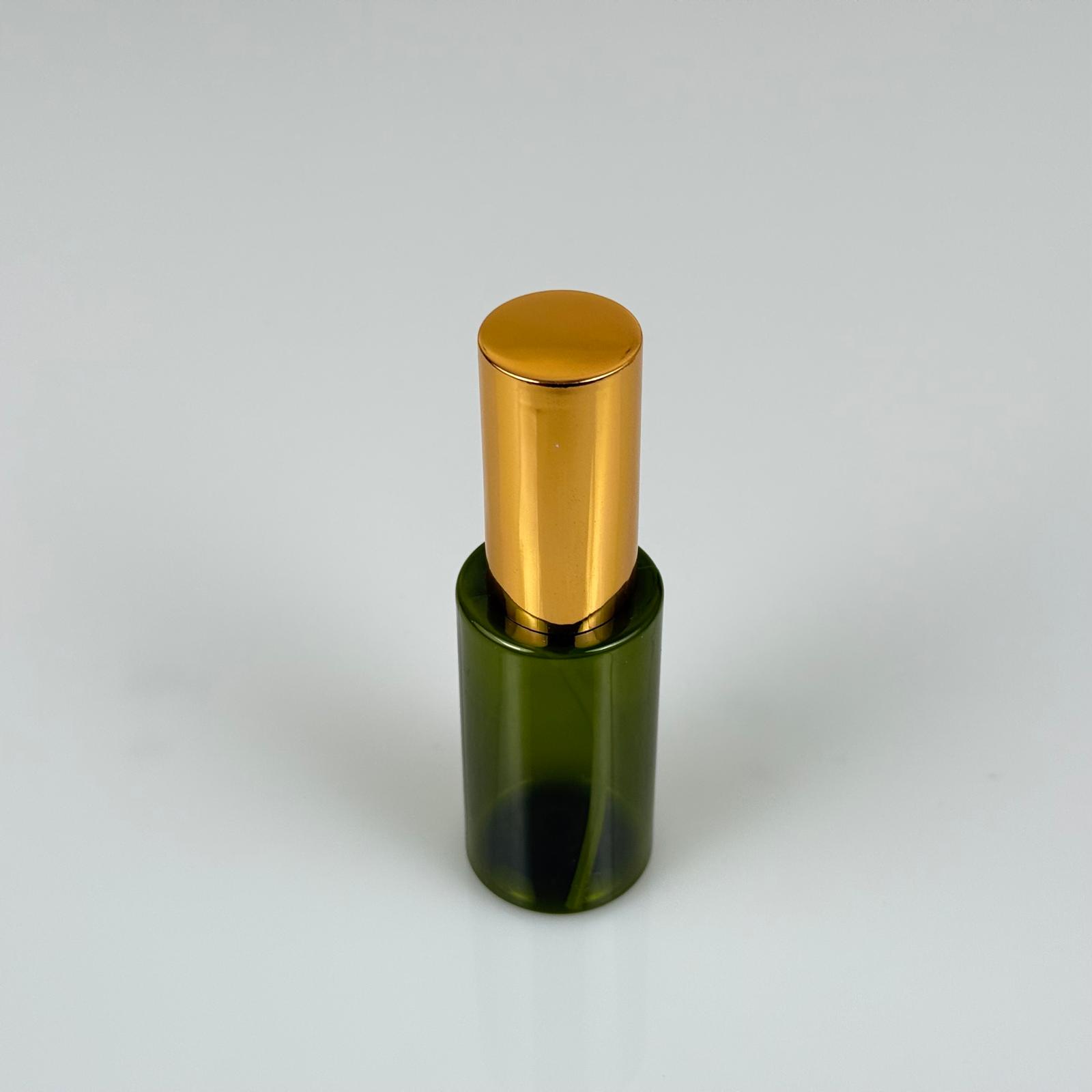 35 ML PET KOLONYA, PARFÜM VB ŞİŞELERİ - METAL ALÜMİNYUM GOLD KAPAK + VİDALI SPREY + 35 CC YEŞİL ŞİŞE SET TAKIM