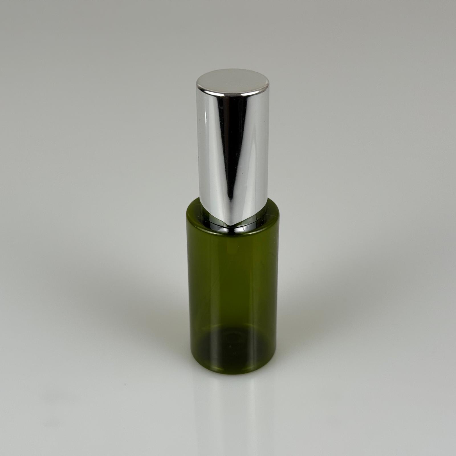 35 ML PET KOLONYA, PARFÜM VB ŞİŞELERİ - METAL ALÜMİNYUM GÜMÜŞ KAPAK + VİDALI SPREY + 35 CC YEŞİL ŞİŞE SET TAKIM