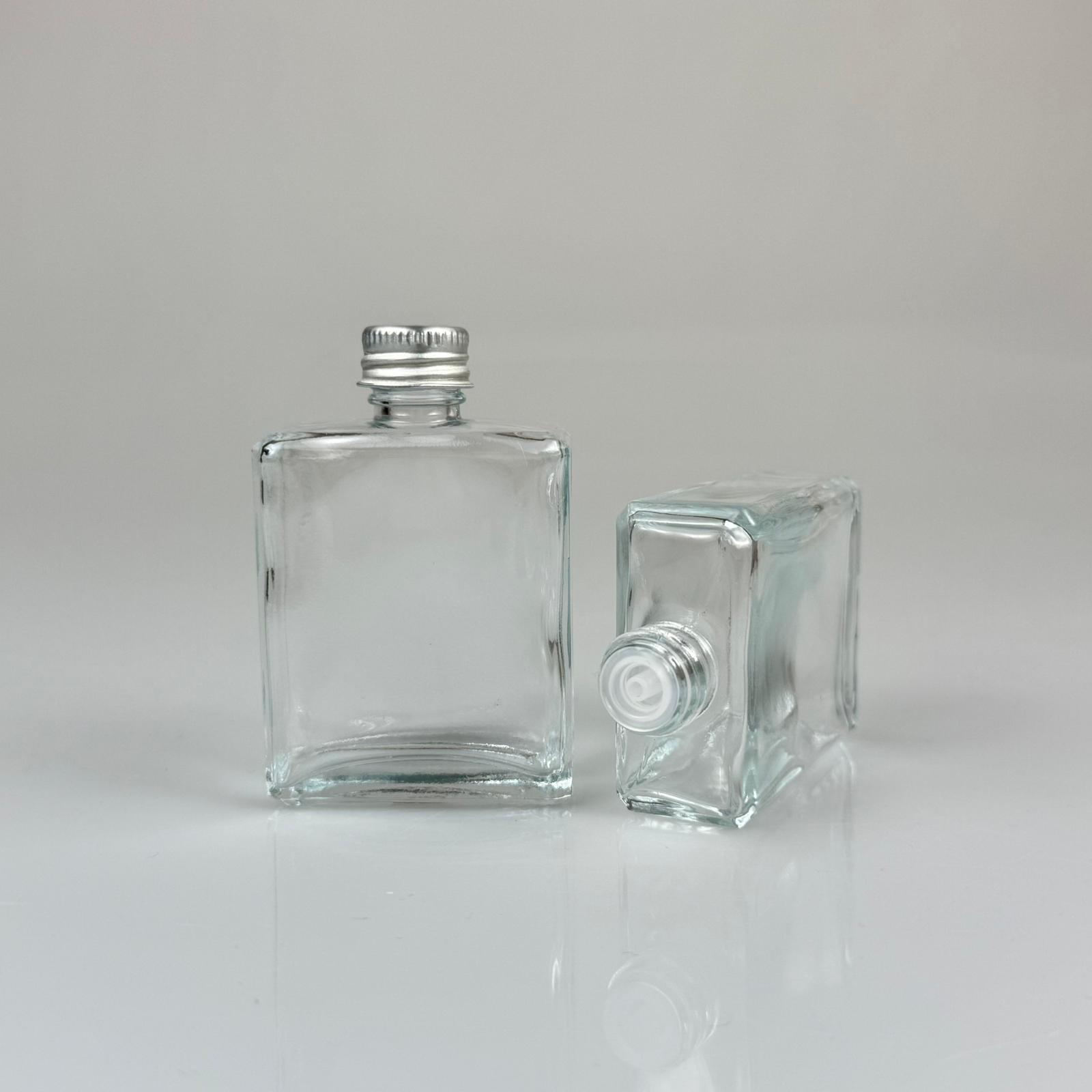40 CC YASSI DİKDÖRTGEN KÖŞELİ KISA CAM ŞİŞE - GÜMÜŞ METAL KAPAKLI KOLONYA TIPALI - 40 ML PRESTİJLİ ŞİŞE