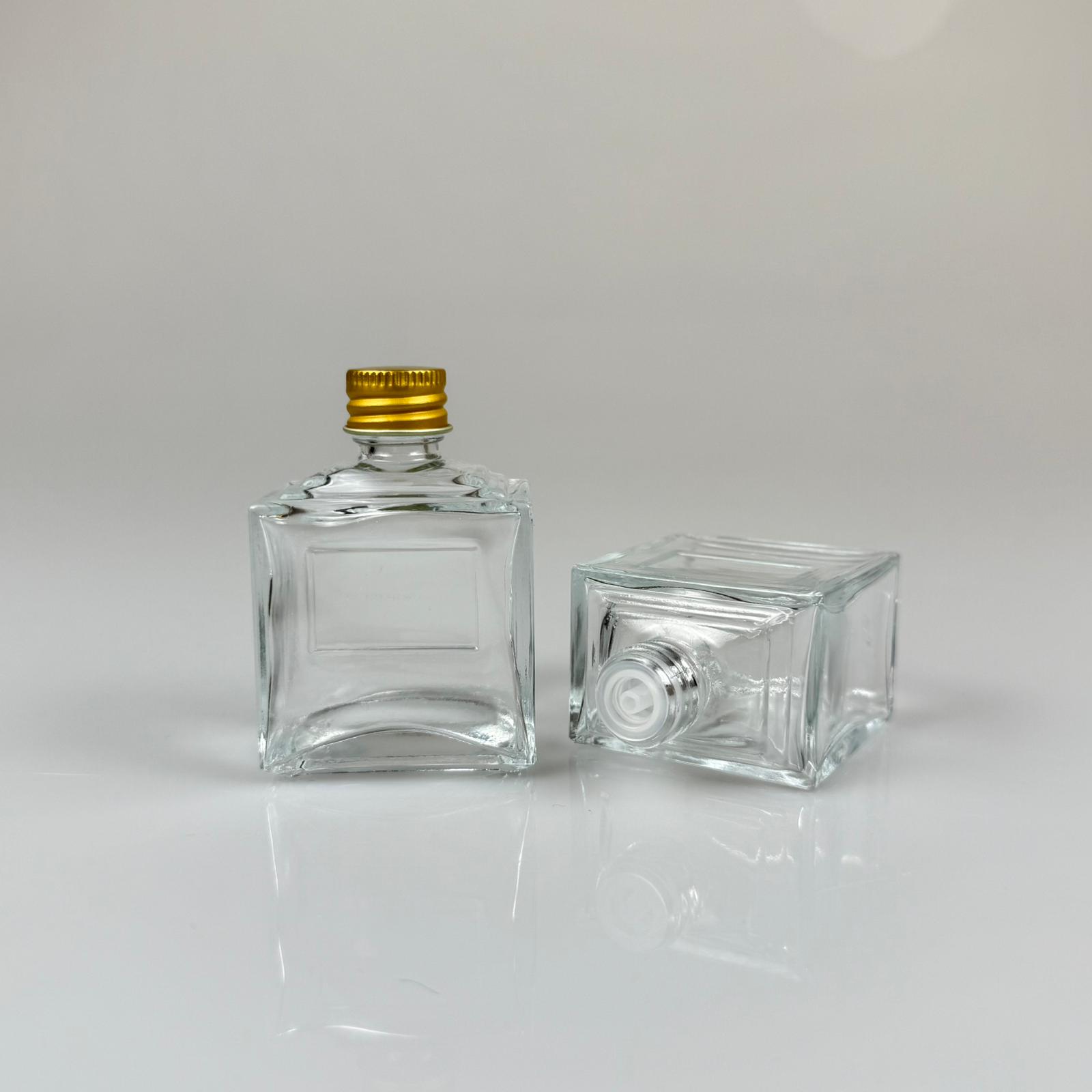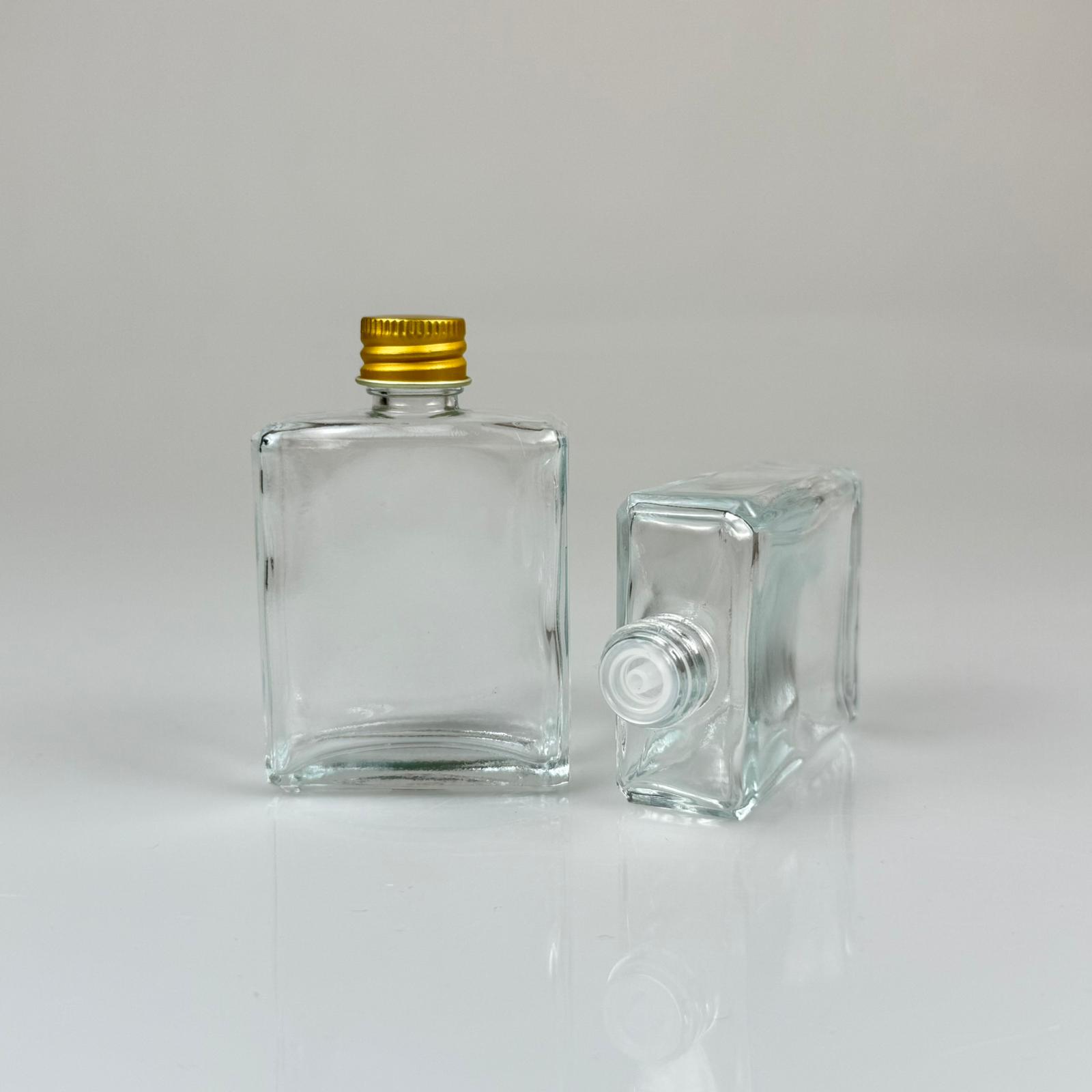 40 CC YASSI DİKDÖRTGEN KÖŞELİ KISA CAM ŞİŞE - GOLD METAL KAPAKLI KOLONYA TIPALI - 40 ML PRESTİJLİ ŞİŞE