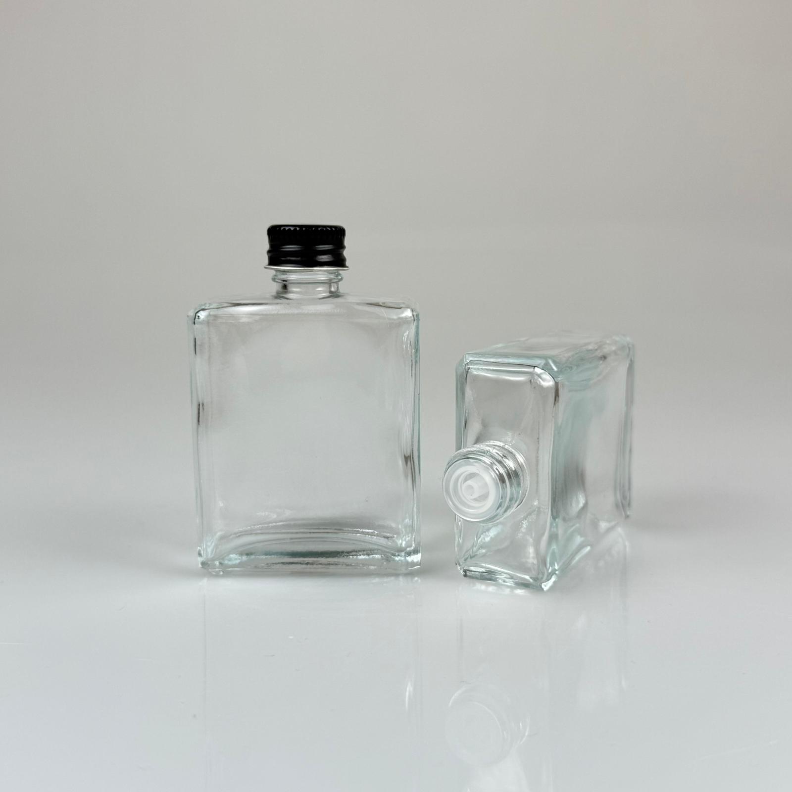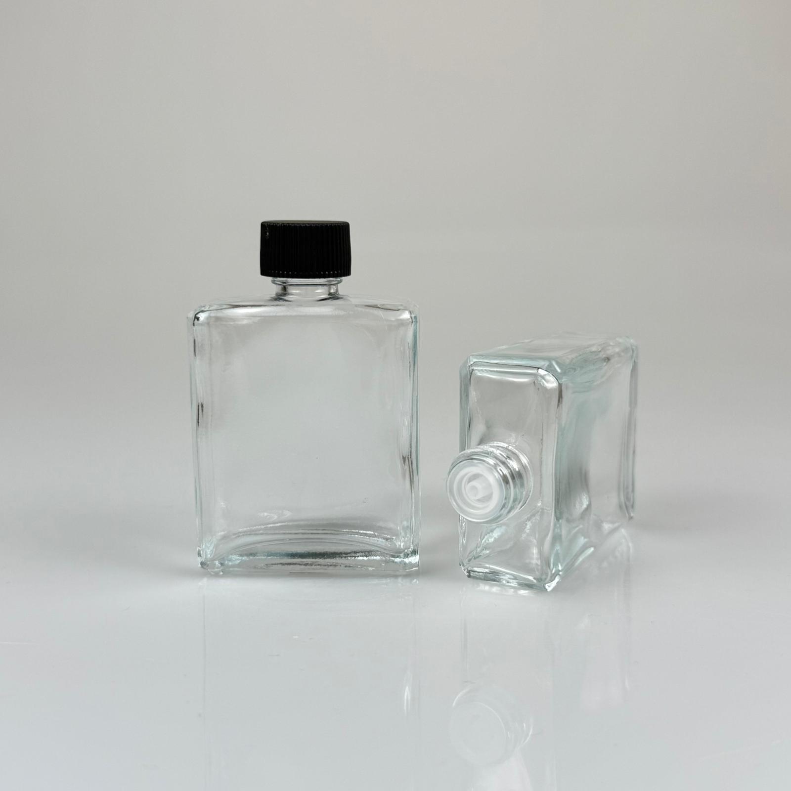 40 CC YASSI DİKDÖRTGEN KÖŞELİ KISA CAM ŞİŞE - SİYAH METAL KAPAKLI KOLONYA TIPALI - 40 ML PRESTİJLİ ŞİŞE