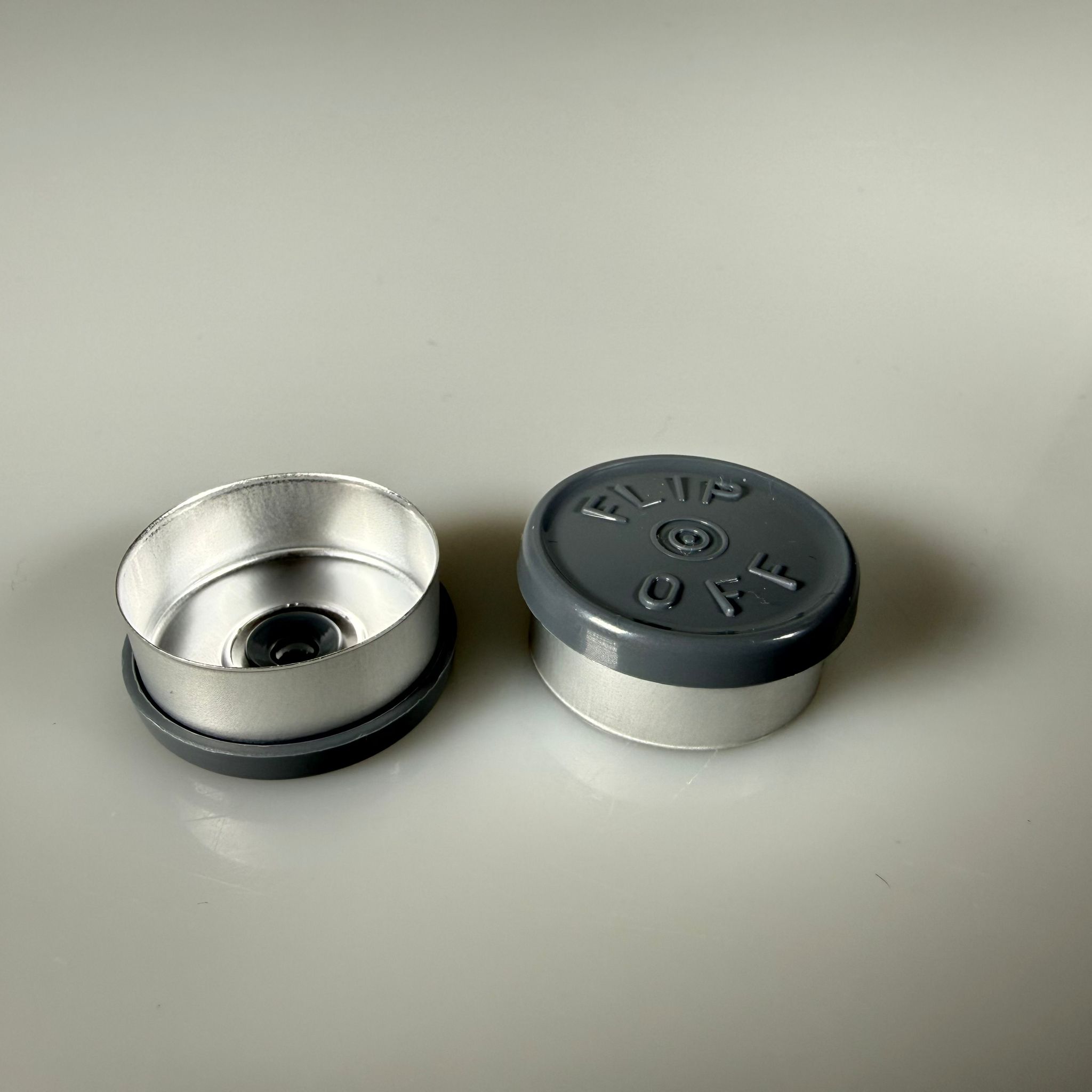 PENİSİLİN ALÜMİNYUM FLAKON KAPAK ÜSTÜ DÜZ GRİ - 20 MM DÜZ RENKLİ FLİP-OFF KAPAK