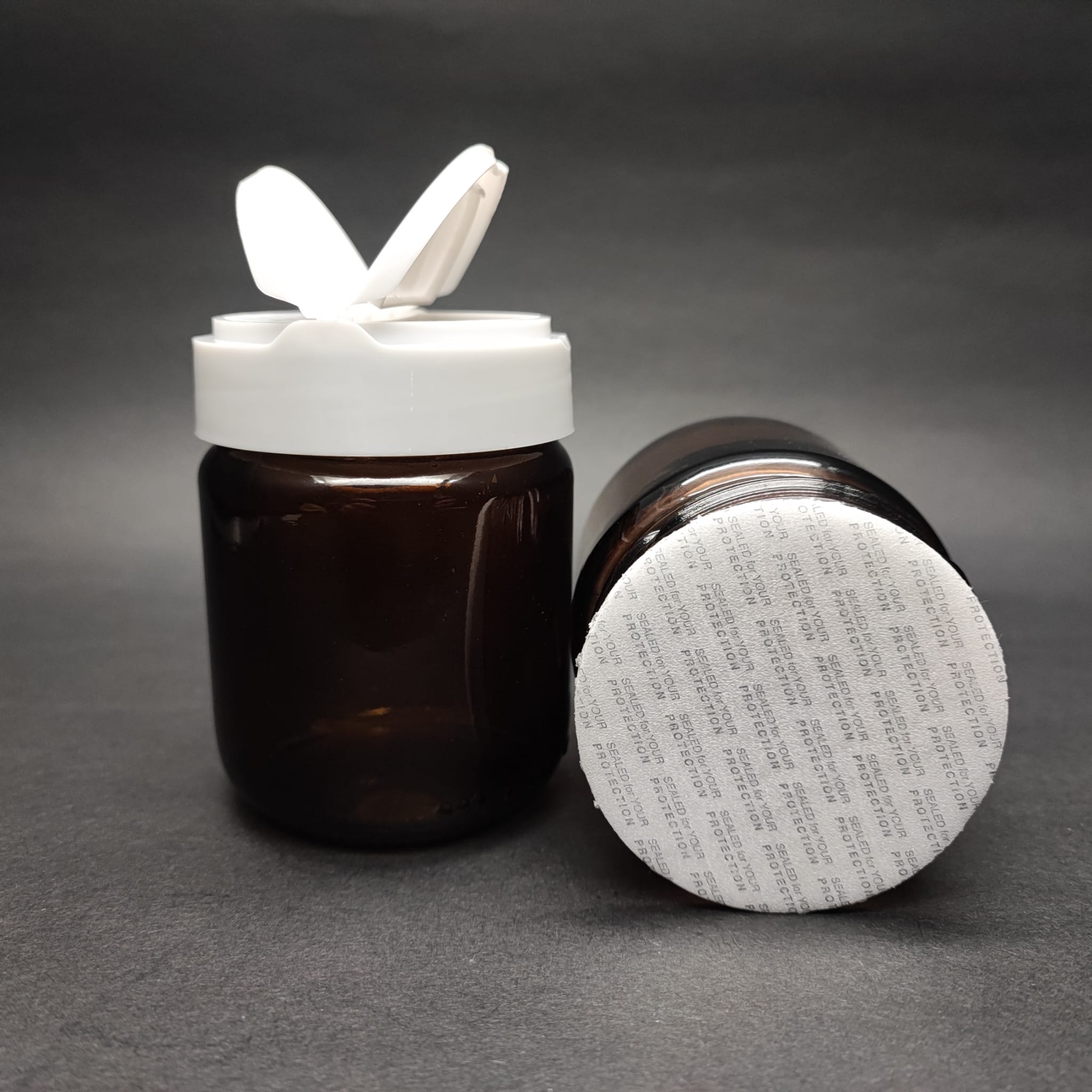 210 CC AMBER CAM BAHARAT KAVANOZU - BEYAZ FLİPTOP BAHARAT KAPAKLI + SIZDIRMAZ KENDİNDEN YAPIŞKANLI KÖPÜK CONTALI - toz kavanozu , baharat ambalajı , boş pudra şişesi . tuzluk , baharat düzenleyici set için kavanoz