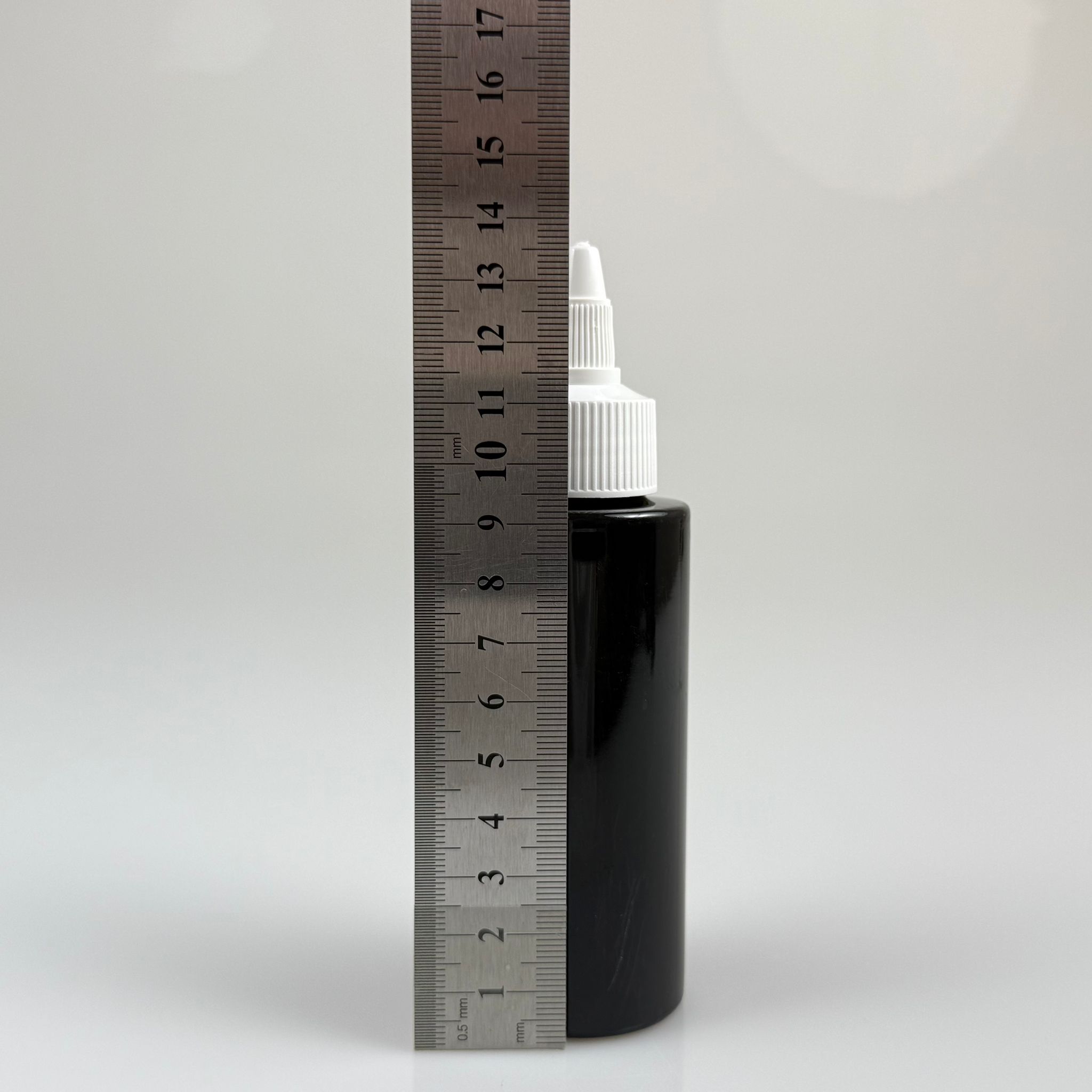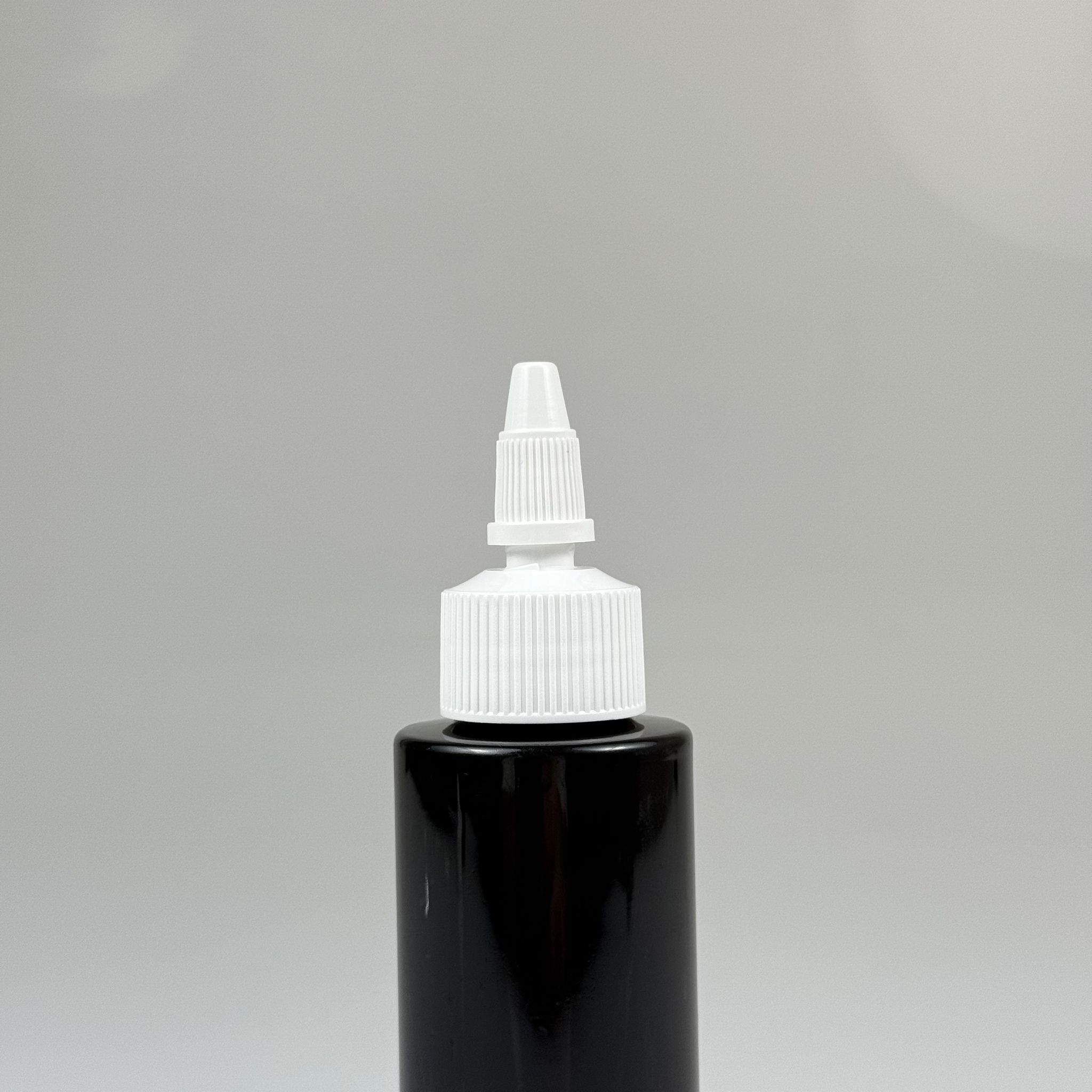 YAĞ, SOS, ACI SOS, SİRKE, SRIRACHA, MÜREKKEP, TUTKAL AKITICI VB BOŞ ŞİŞELERİ - BEYAZ SİVRİ TWİST AKITICI KAPAK + 100 ML KÜT SİYAH SERT PET PLASTİK ŞİŞE TAKIM