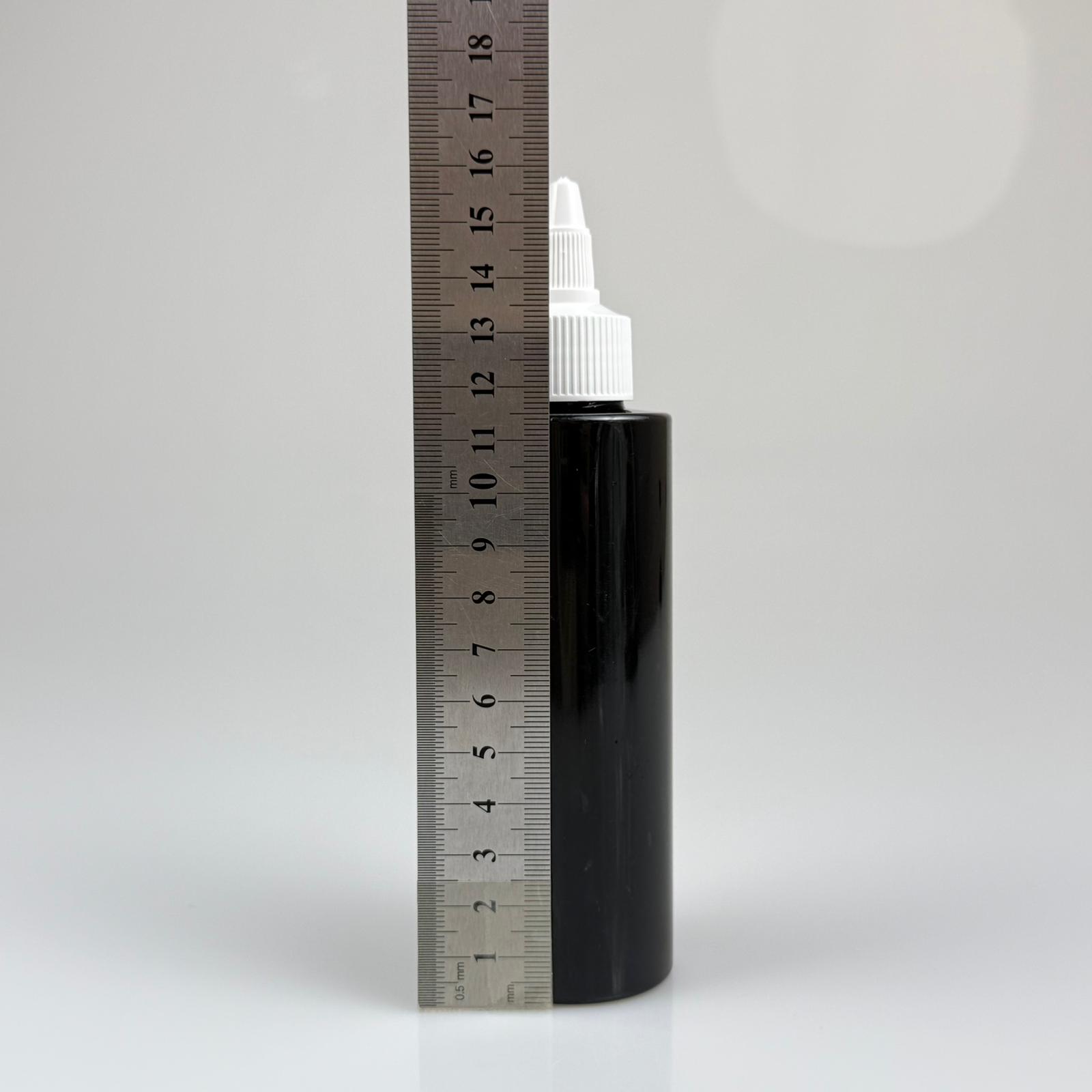 YAĞ, SOS, ACI SOS, SİRKE, SRIRACHA, MÜREKKEP, TUTKAL AKITICI VB BOŞ ŞİŞELERİ - BEYAZ SİVRİ TWİST AKITICI KAPAK + 150 ML SİYAH SERT PET PLASTİK ŞİŞE TAKIM