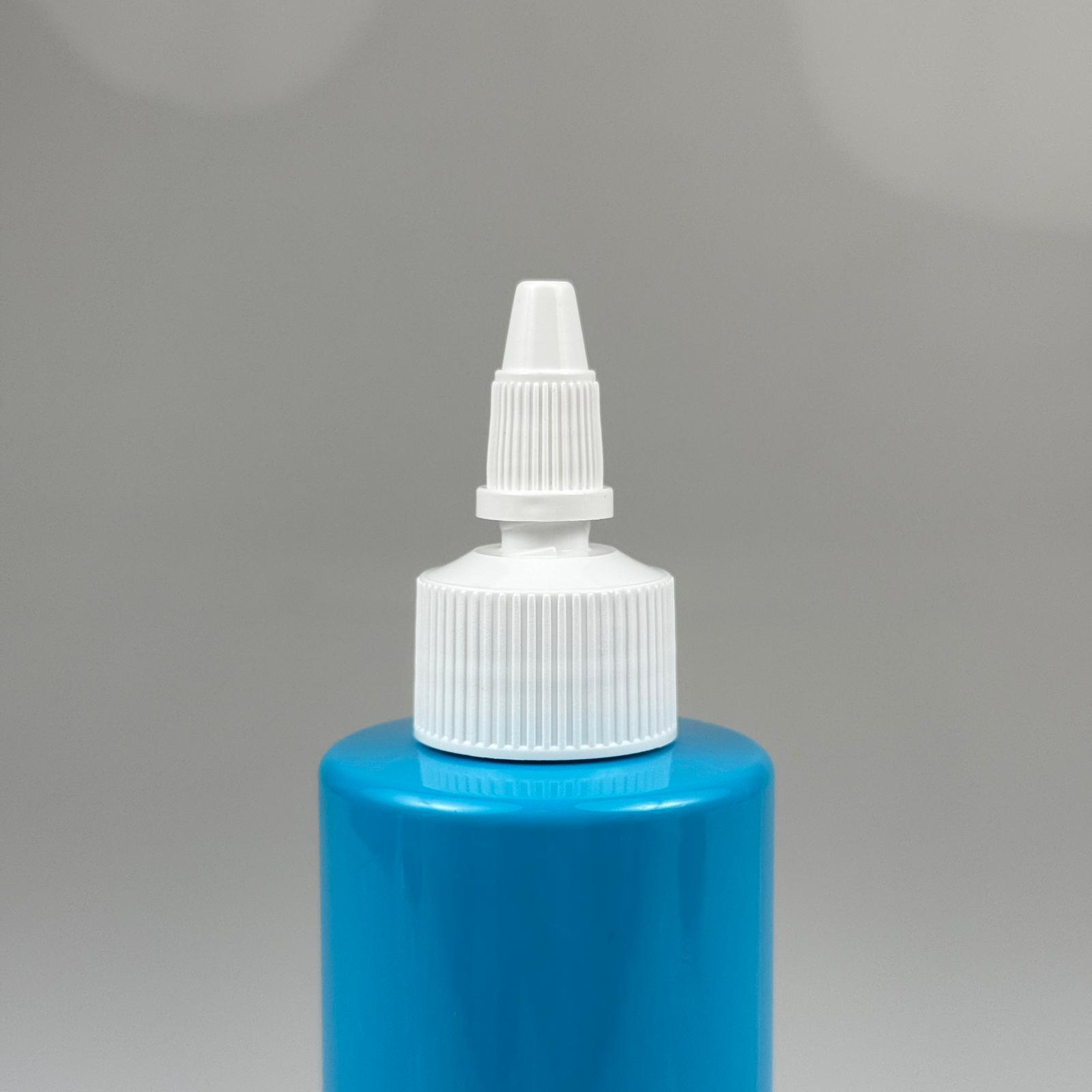 YAĞ, SOS, ACI SOS, SİRKE, SRIRACHA, MÜREKKEP, TUTKAL AKITICI VB BOŞ ŞİŞELERİ - BEYAZ SİVRİ TWİST AKITICI KAPAK + 200 ML MAVİ KÜT SERT PET PLASTİK ŞİŞE TAKIM