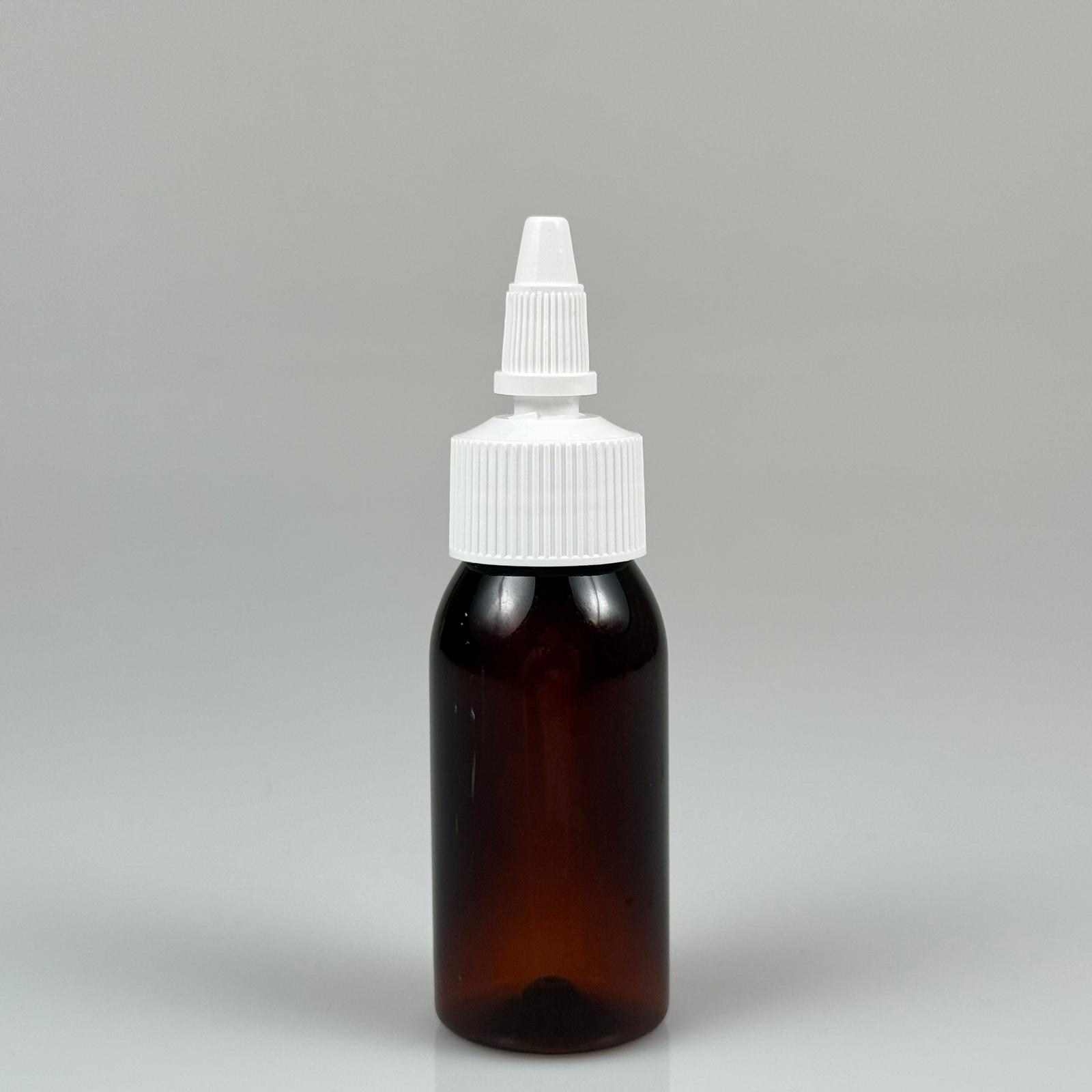 YAĞ, SOS, ACI SOS, SİRKE, SRIRACHA, MÜREKKEP, TUTKAL AKITICI VB BOŞ ŞİŞELERİ - BEYAZ SİVRİ TWİST AKITICI KAPAK + 50 ML AMBER SERT PET PLASTİK ŞİŞE TAKIM