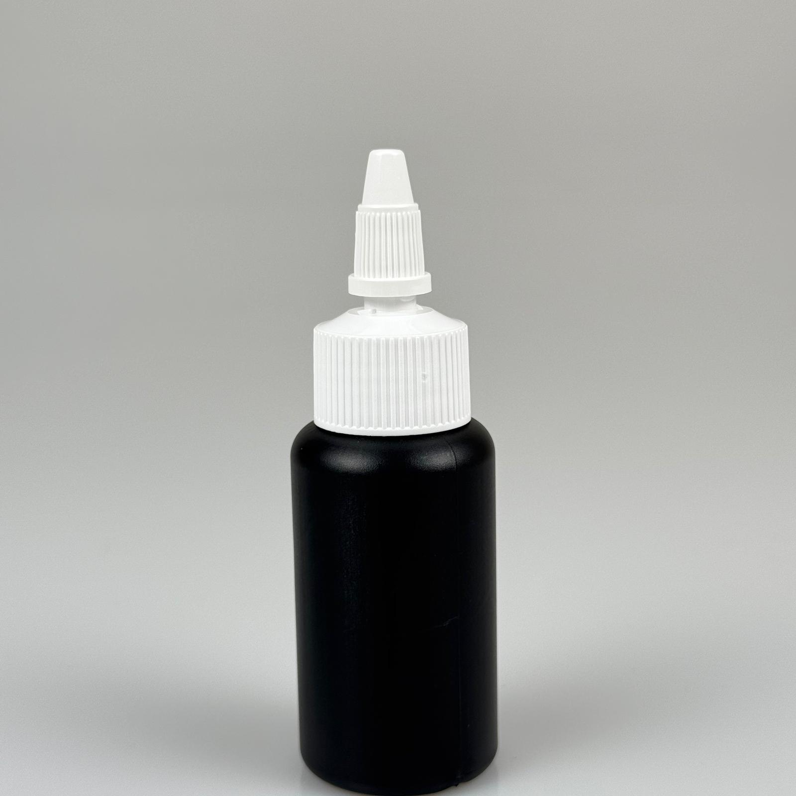 YAĞ, SOS, ACI SOS, SİRKE, SRIRACHA, MÜREKKEP, TUTKAL AKITICI VB BOŞ ŞİŞELERİ - BEYAZ SİVRİ TWİST AKITICI KAPAK + 50 ML SİYAH POLİETİLEN PLASTİK ŞİŞE TAKIM