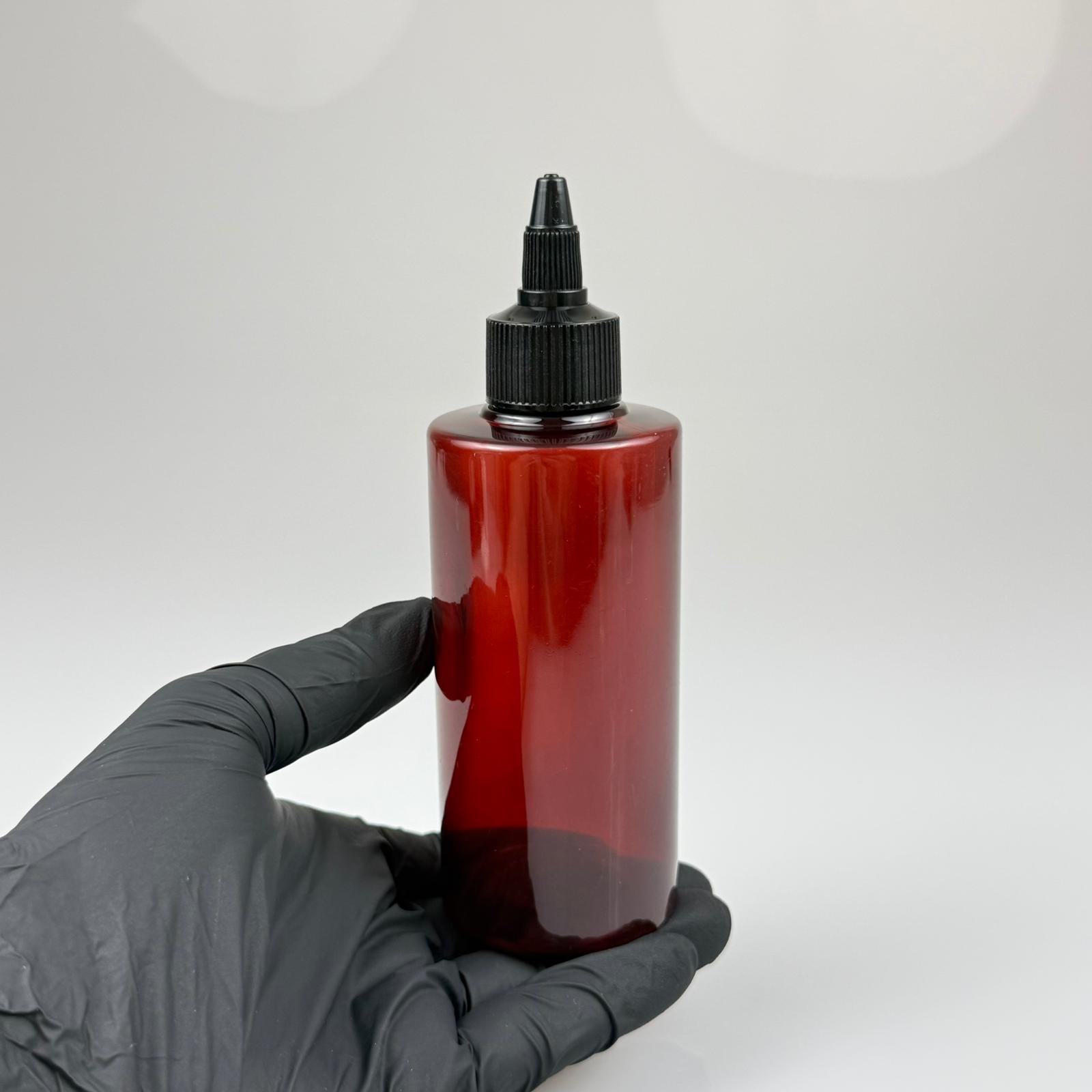 YAĞ, SOS, ACI SOS, SİRKE, SRIRACHA, MÜREKKEP, TUTKAL AKITICI VB BOŞ ŞİŞELERİ - SİYAH SİVRİ TWİST AKITICI KAPAK + 200 ML AMBER KÜT PET PLASTİK ŞİŞE TAKIM