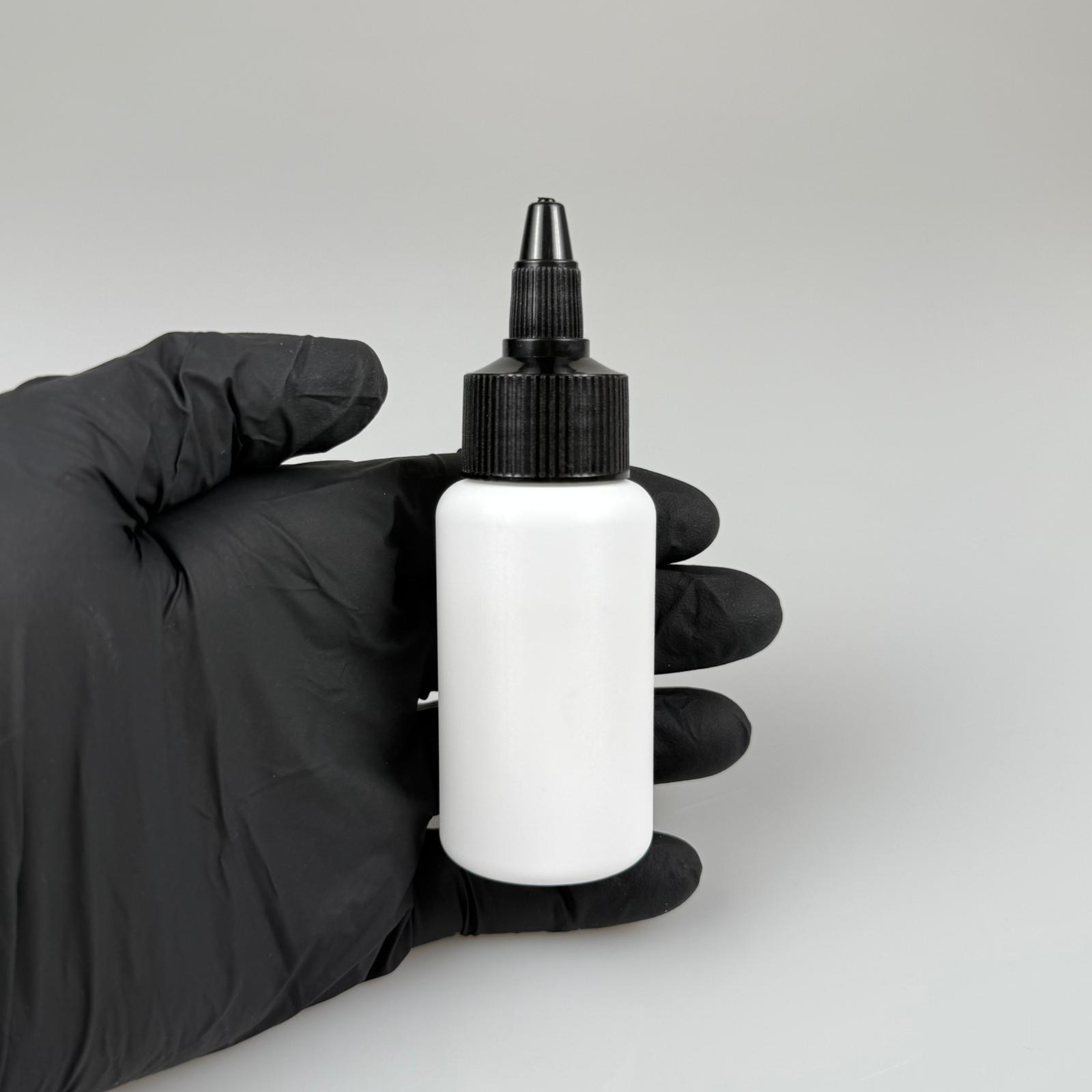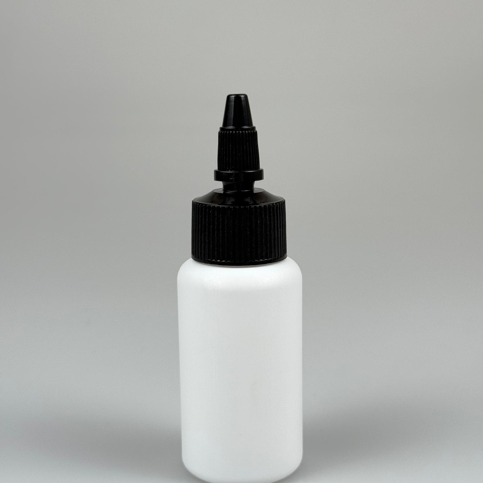 YAĞ, SOS, ACI SOS, SİRKE, SRIRACHA, MÜREKKEP, TUTKAL AKITICI VB BOŞ ŞİŞELERİ - SİYAH SİVRİ TWİST AKITICI KAPAK + 50 ML BEYAZ POLİETİLEN PLASTİK ŞİŞE TAKIM