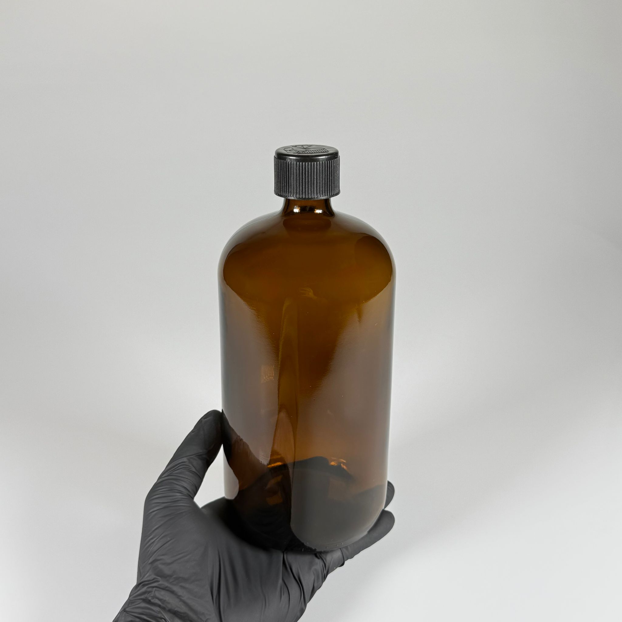 1 LT KAHVERENGİ ECZA ŞİŞESİ - SİYAH ÇOCUK KİLİT KAPAKLI KAPAK - 1000 CC AMBER KÜT BOYUNLU CAM İLAÇ ŞİŞESİ - BOŞ ŞURUP ŞİŞELERİ