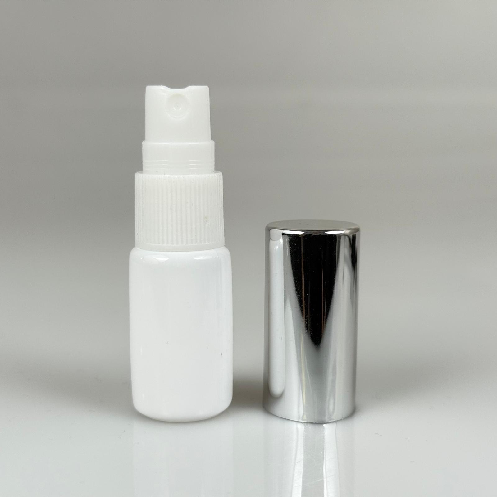 10 ML PET KOLONYA, PARFÜM VB ŞİŞELERİ - METAL ALÜMİNYUM GÜMÜŞ KAPAK + VİDALI SPREY + 10 CC BEYAZ SHOT ŞİŞE SET TAKIM