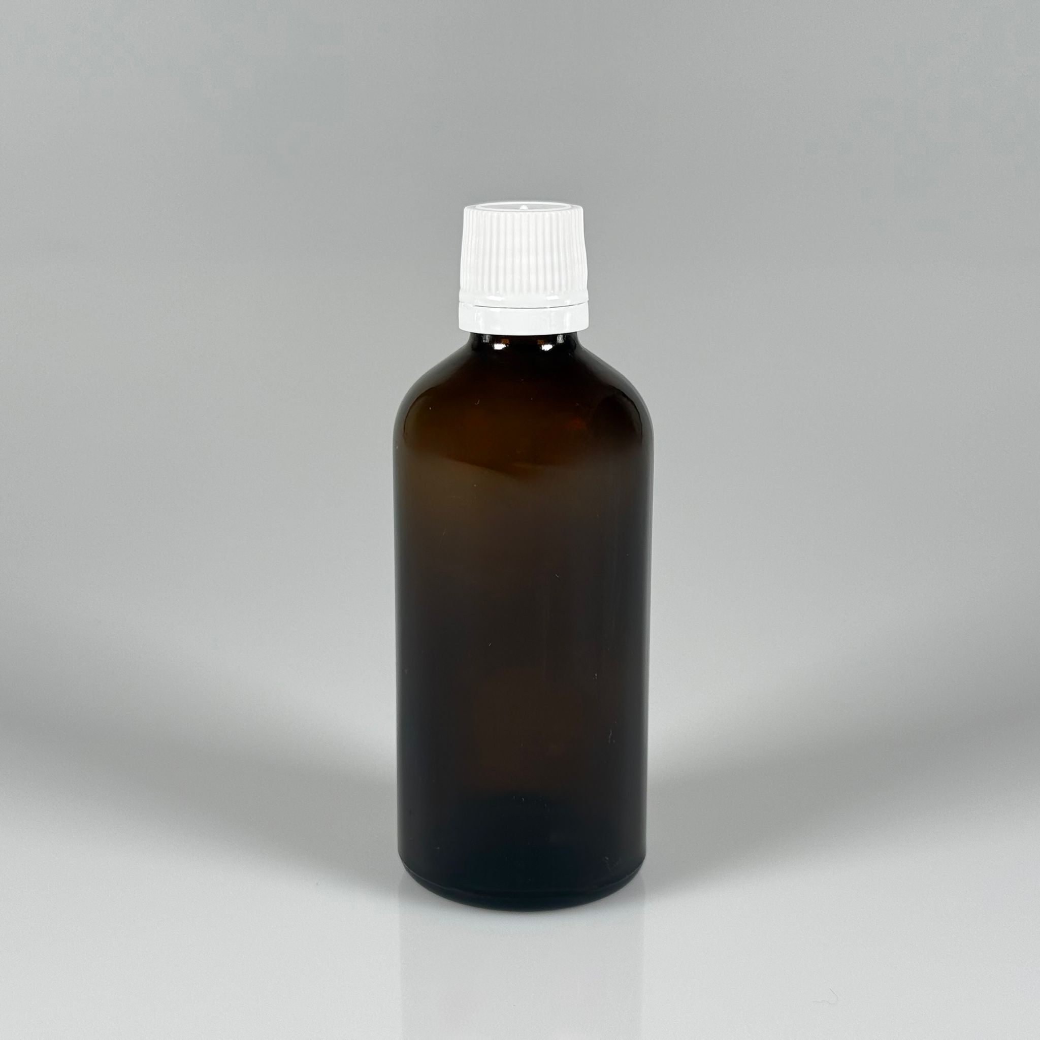 100 CC CAM AMBER KAHVERENGİ KİLİTLİ, KENDİNDEN CONTALI BEYAZ KAPAKLI - 100 ML DAR AĞIZLI İLAÇ ŞİŞESİ