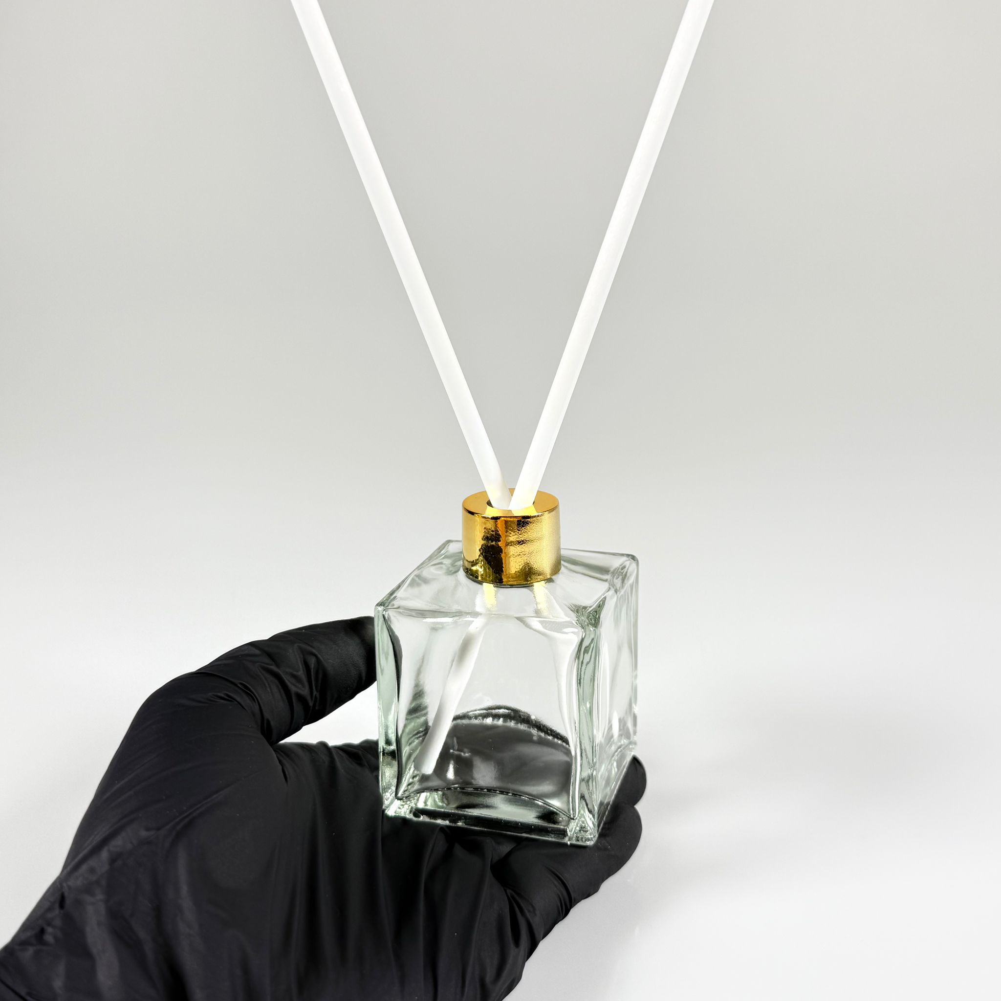 100 CC KARE BAMBU CAM BAMBU ODA KOKUSU ŞİŞESİ - 100 ML ÇUBUKLU KÖŞELİ BAMBU ODA KOKUSU ŞİŞESİ - DİFÜZÖR ŞİŞE- CAM ŞİŞE + GOLD PLASTİK KAPAK + TIPA + 2 ADET FİBER BEYAZ BAMBU ÇUBUK - YENİ MODEL