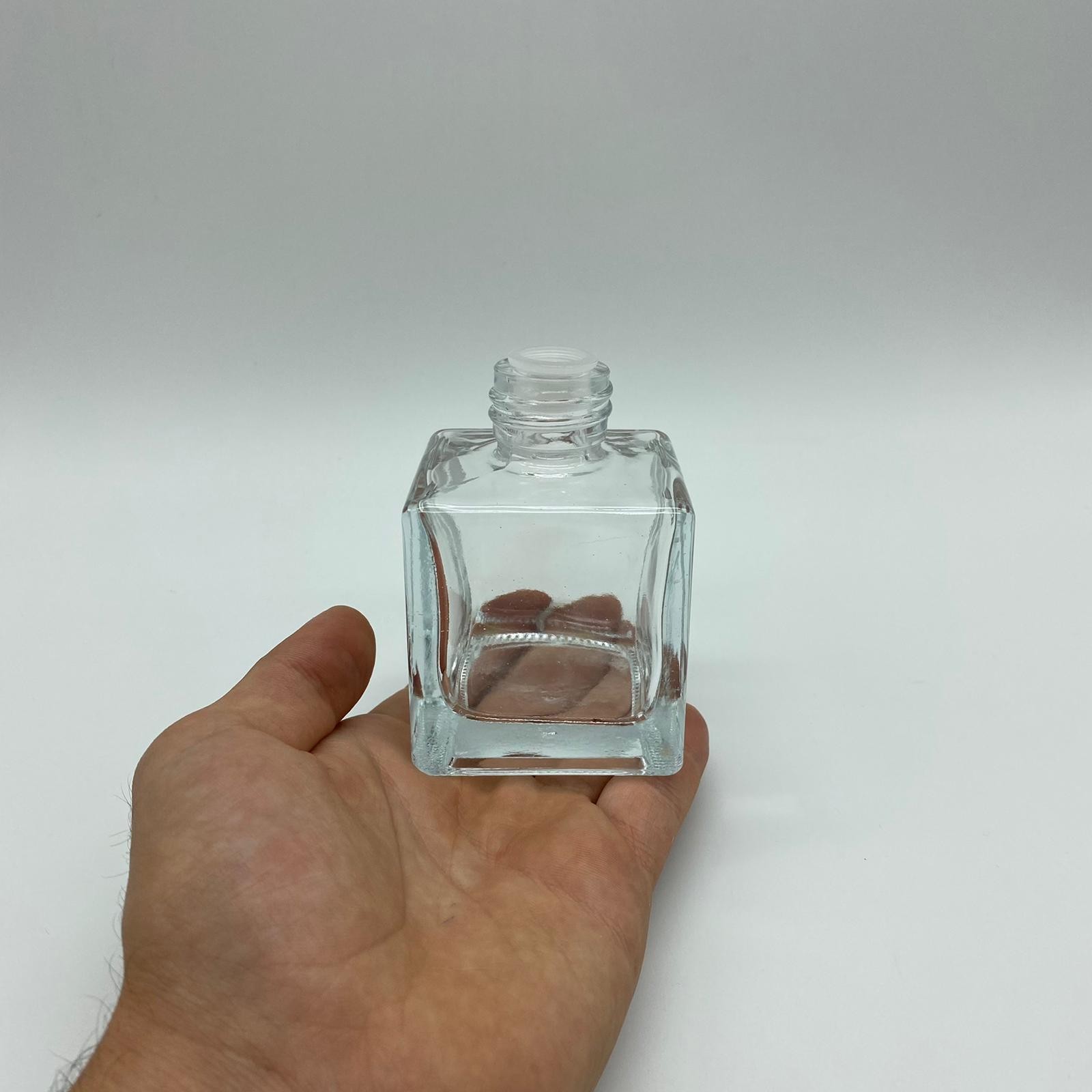 100 CC ŞEFFAF CAM KARE BAMBU ŞİŞE PLASTİK TIPALI
