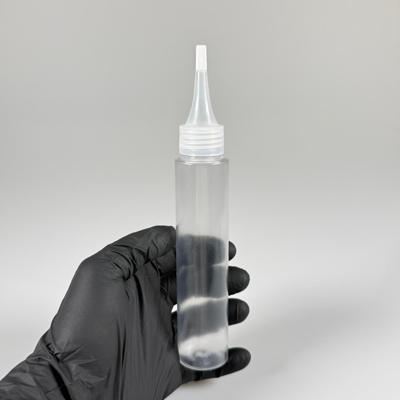 100 CC UZUN SİLİNDİR BUĞULU PET ŞİŞE (24 GR) - ŞEFFAF SİVRİ AKITICI KAPAKLI - 100 ML BİBERİYE SUYU, LAVANTA YAĞI, SAÇ SERUM, TONİK VB İÇİN PLASTİK KOZMETİK AMBALAJLARI