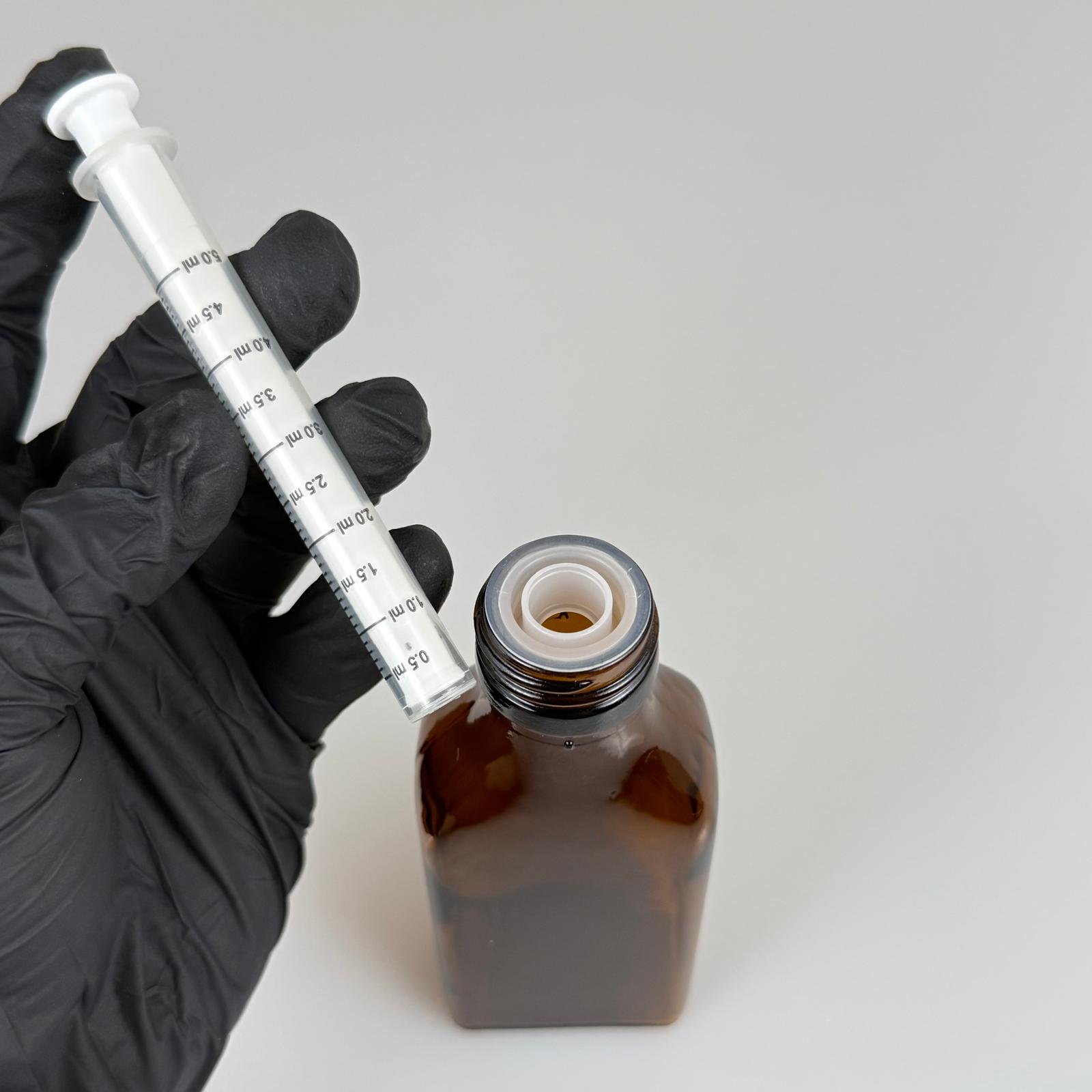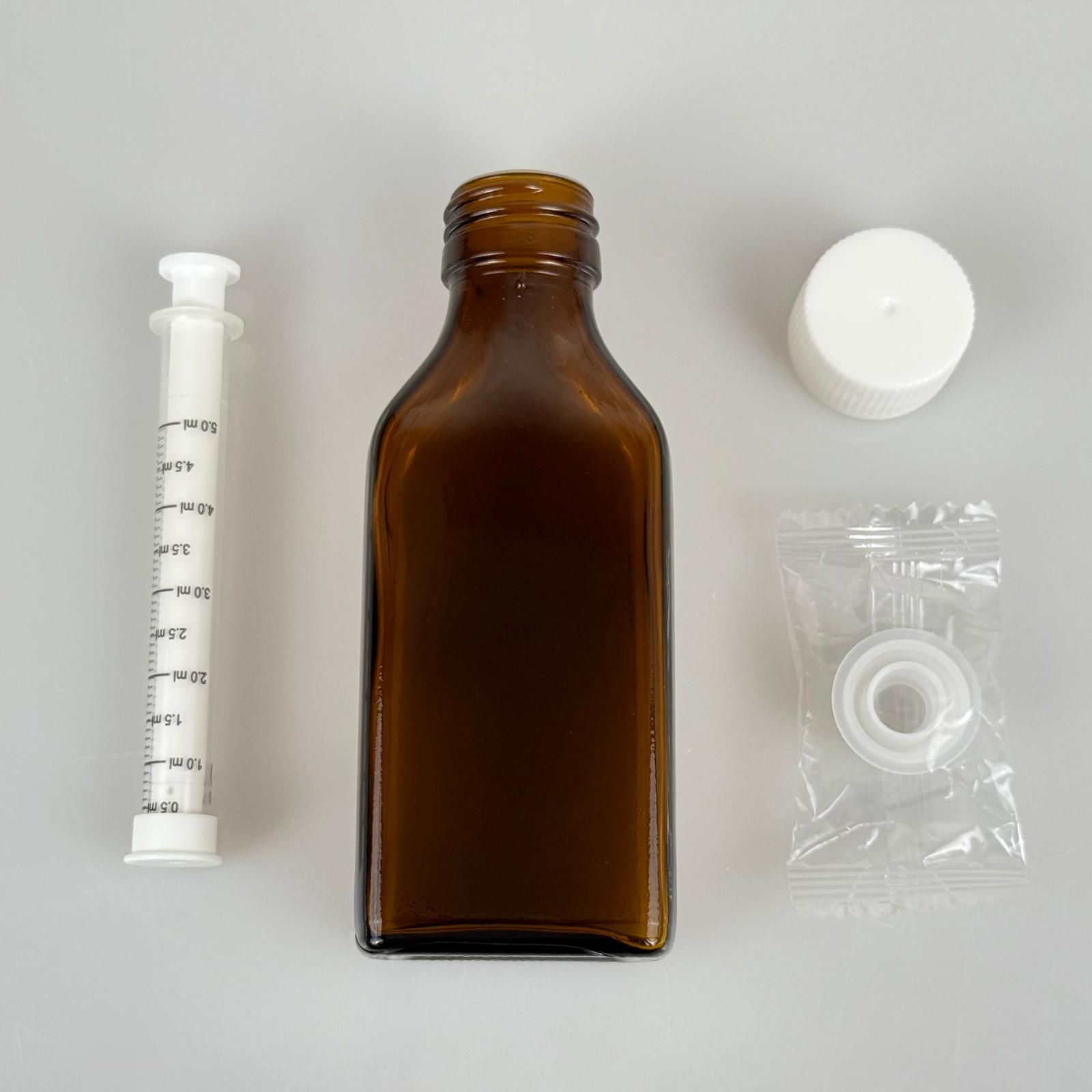 100 ML YASSI CAM ECZA ŞİŞESİ + 5 ML DOZAJ PİPETİ + DOZAJ TIPASI + CONTALI PLASTİK KAPAK TAKIM
