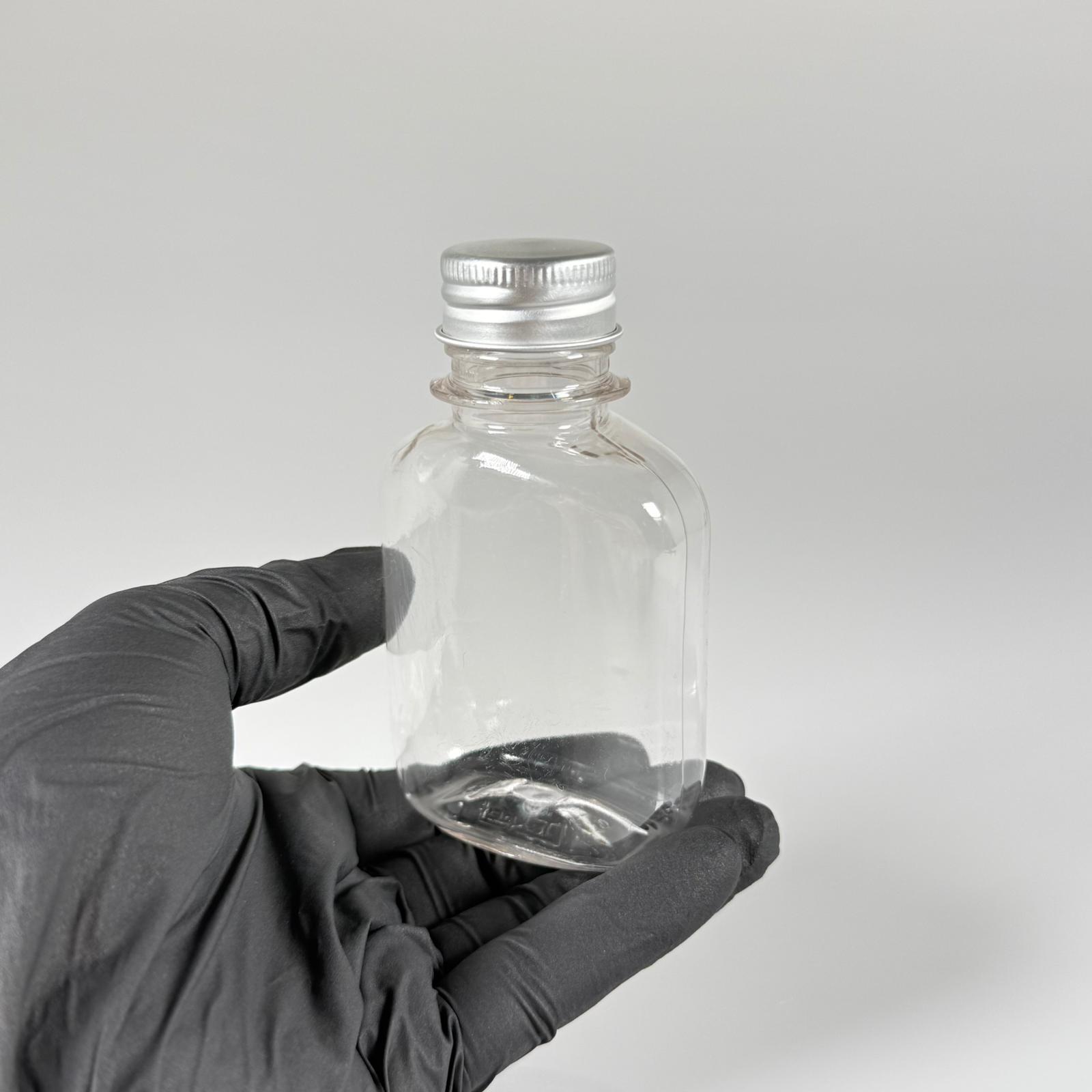 100 ML YASSI METAL KAPAKLI KOLONYA TIPALI PET ŞİŞE - 100 CC CONTALI GÜMÜŞ ALÜMİNYUM KAPAKLI PLASTİK ŞİŞE