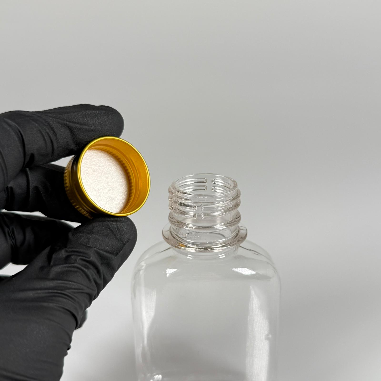 100 ML YASSI METAL KAPAKLI PET ŞİŞE - 100 CC CONTALI GOLD ALÜMİNYUM KAPAKLI PLASTİK ŞİŞE