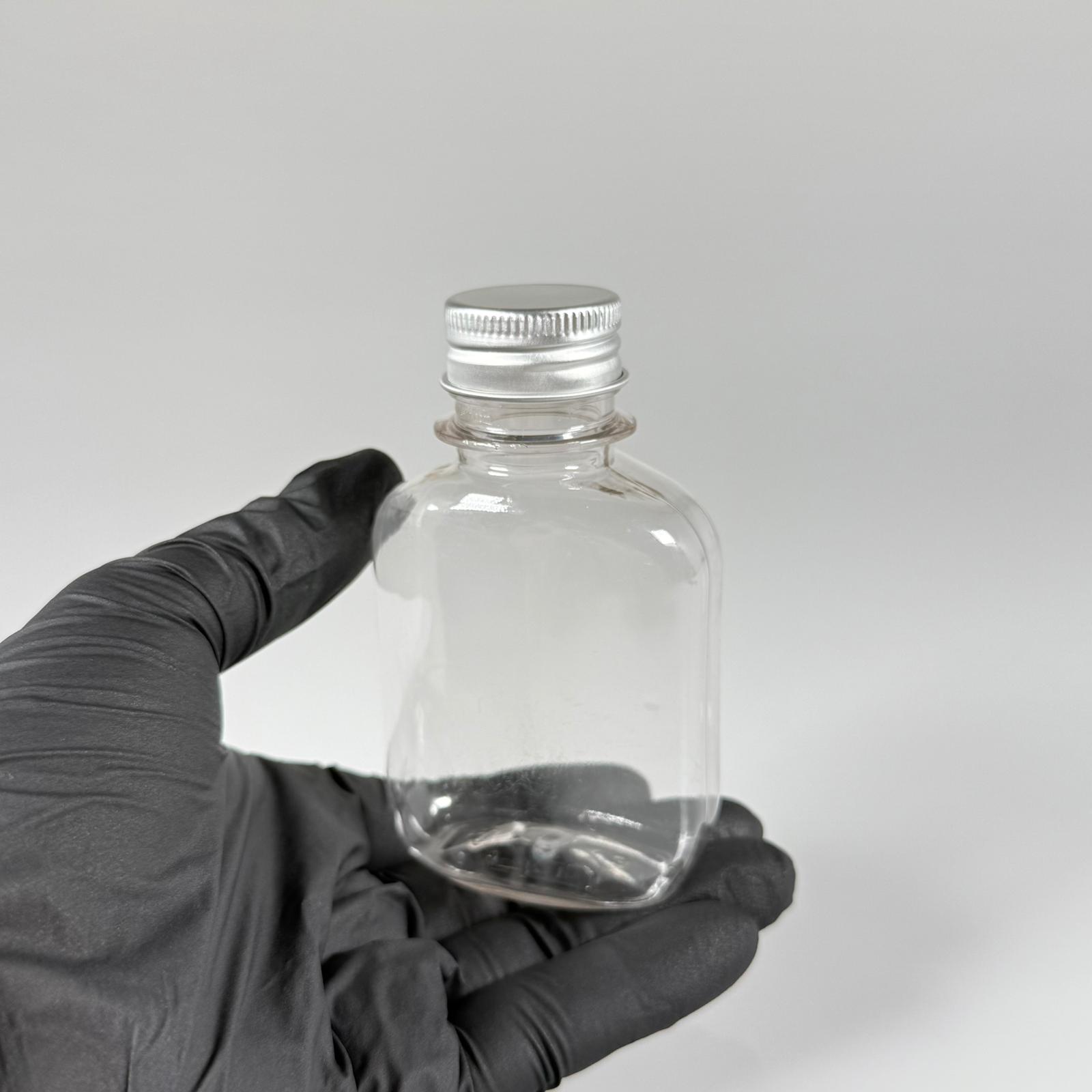 100 ML YASSI METAL KAPAKLI PET ŞİŞE - 100 CC CONTALI GÜMÜŞ ALÜMİNYUM KAPAKLI PLASTİK ŞİŞE