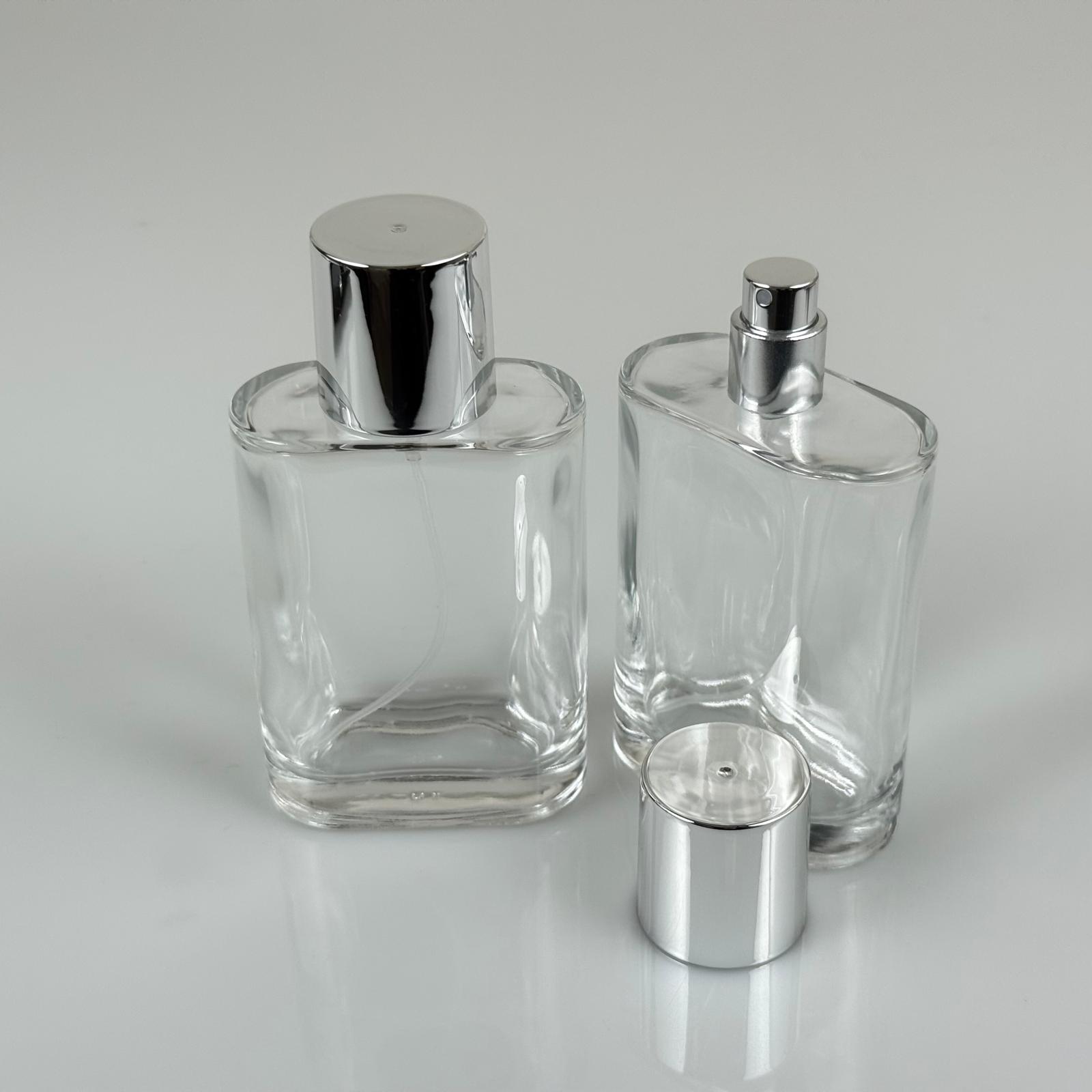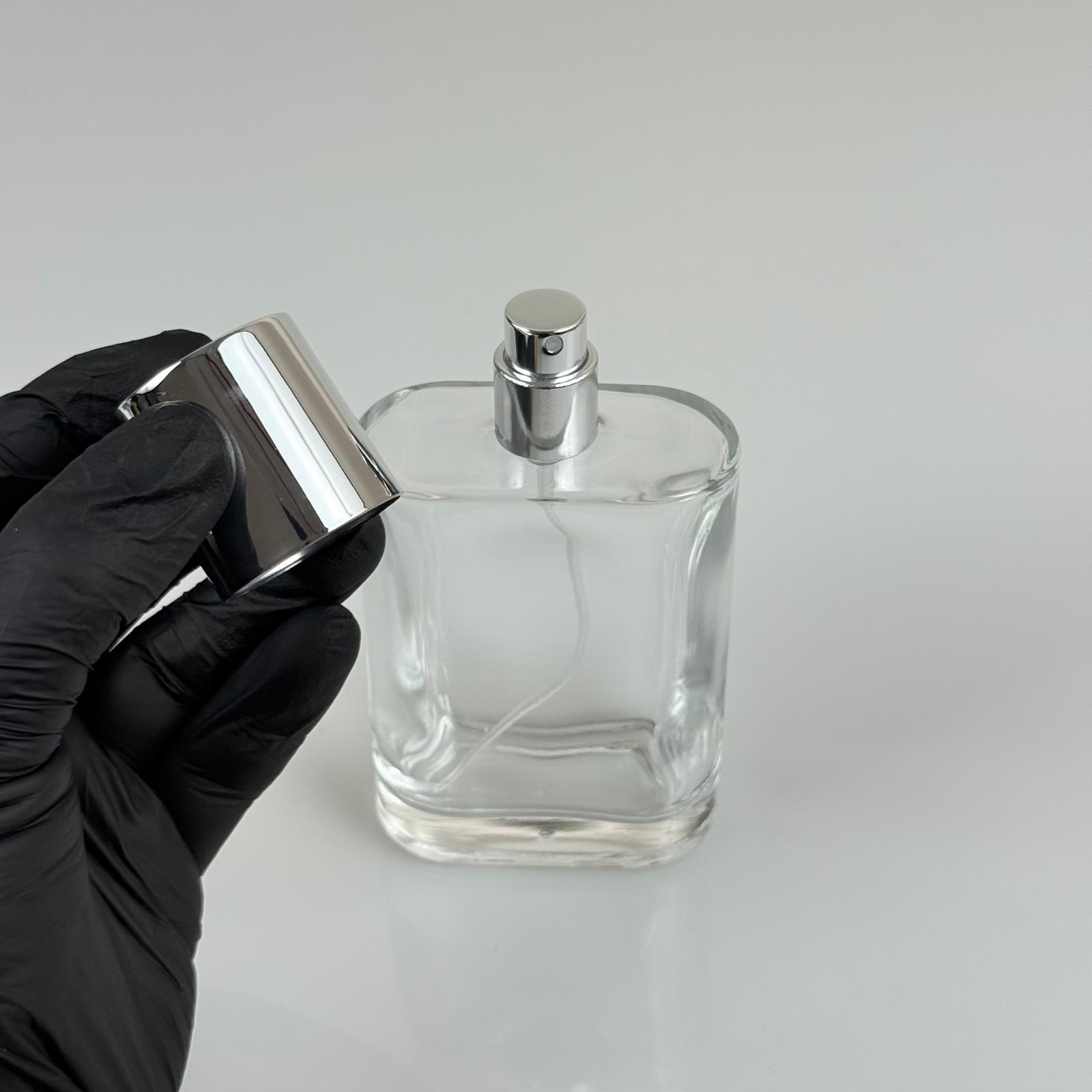 100 ML YASSI MODEL CEO PARFÜM ŞİŞESİ + GÜMÜŞ METAL SPREYLİ + GÜMÜŞ GENİŞ KAPAKLI (AĞIZ 15 MM GEÇME KOLAY KAPAMA)