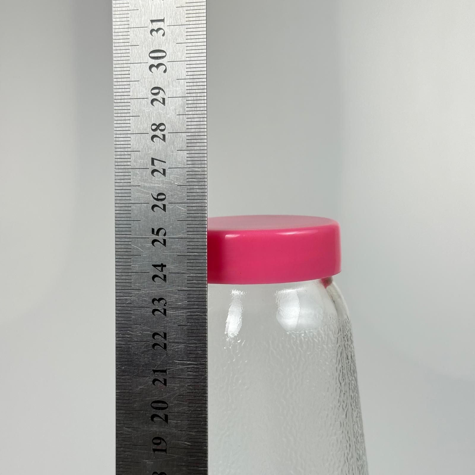 1000 CC CAM ŞİŞESİ + PEMBE PLASTİK KAPAK - 1 LİTRE PLASTİK KAPAKLI CAM ŞİŞE