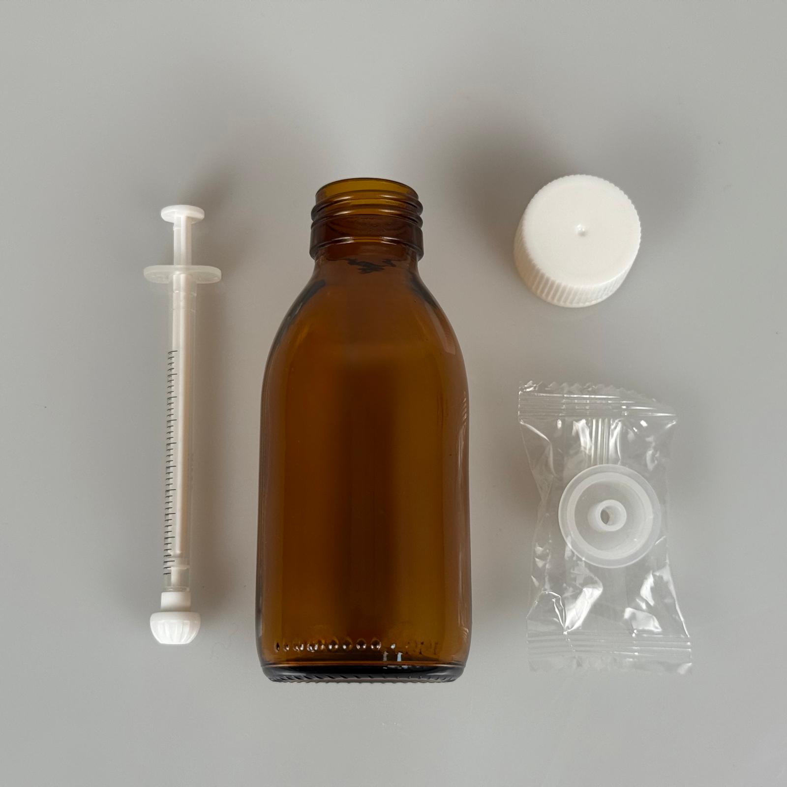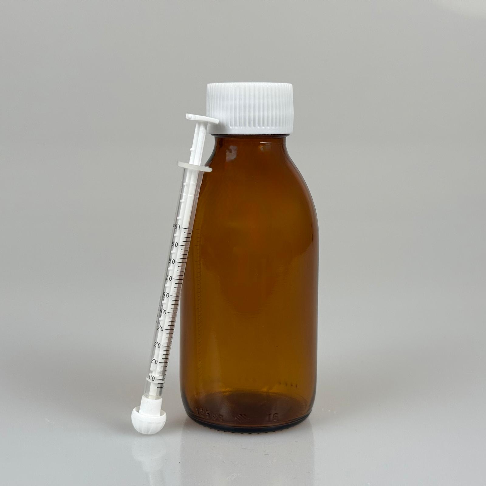 125 ML CAM ECZA ŞİŞESİ + 1 ML DOZAJ PİPETİ + DOZAJ TIPASI + CONTALI PLASTİK KAPAK TAKIM