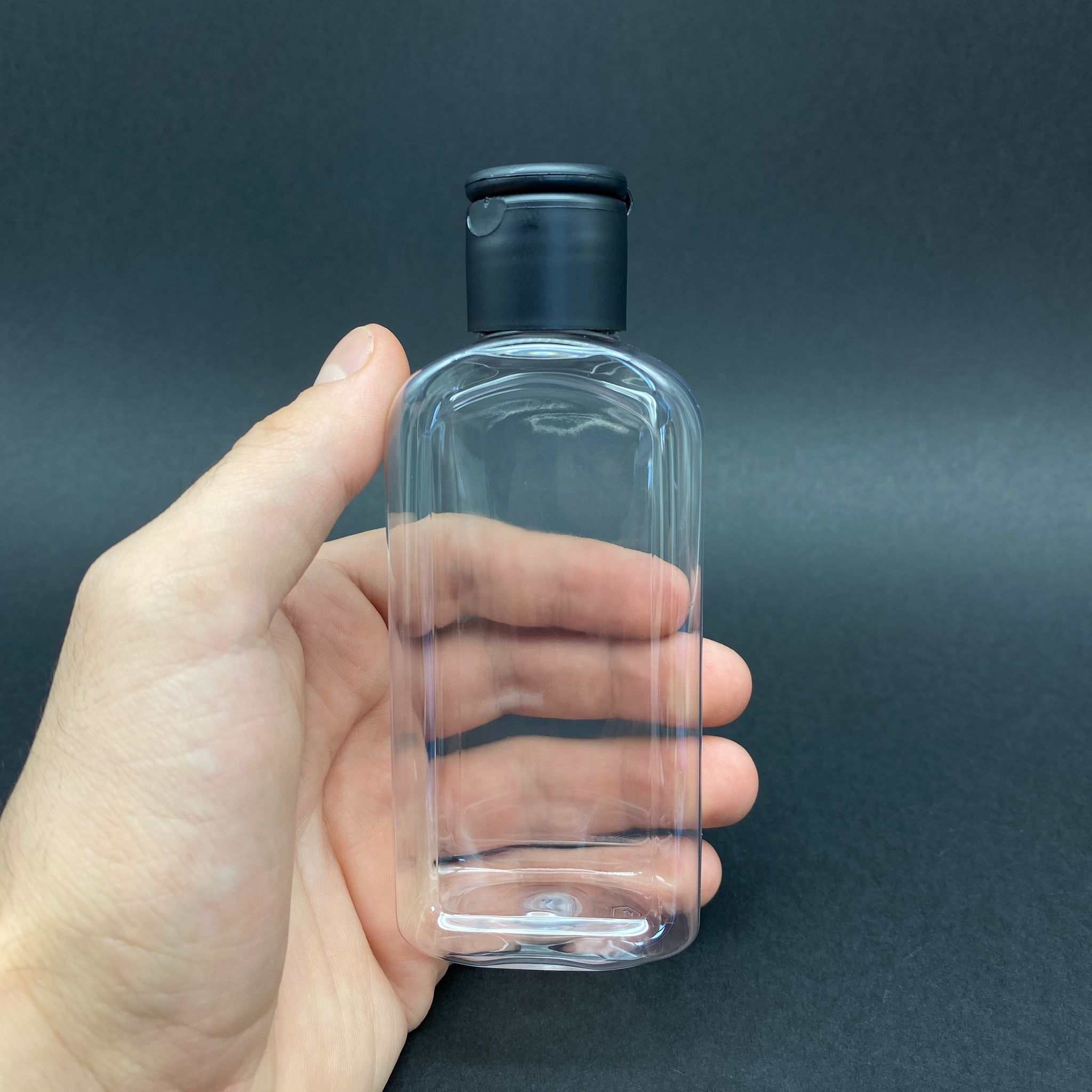 140 CC YASSI ŞİŞE - SİYAH FLİPTOP AKITICILI KAPAKLI - 140 ML PLASTİK YASSI ŞİŞE