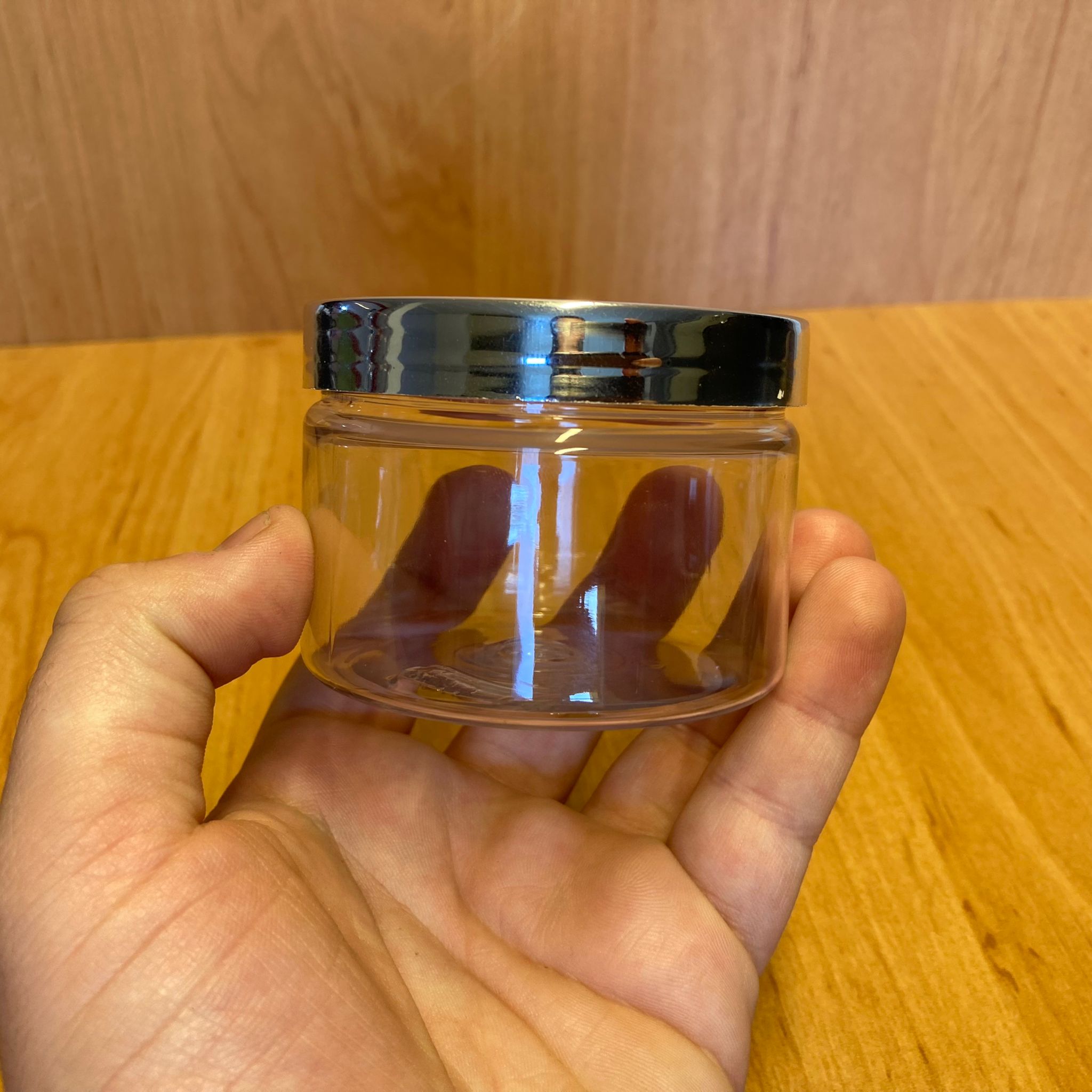 150 CC ŞEFFAF SERT PLASTİK KAVANOZ - GÜMÜŞ KAPAKLI - 150 ML PLASTİK KREM KAVANOZU