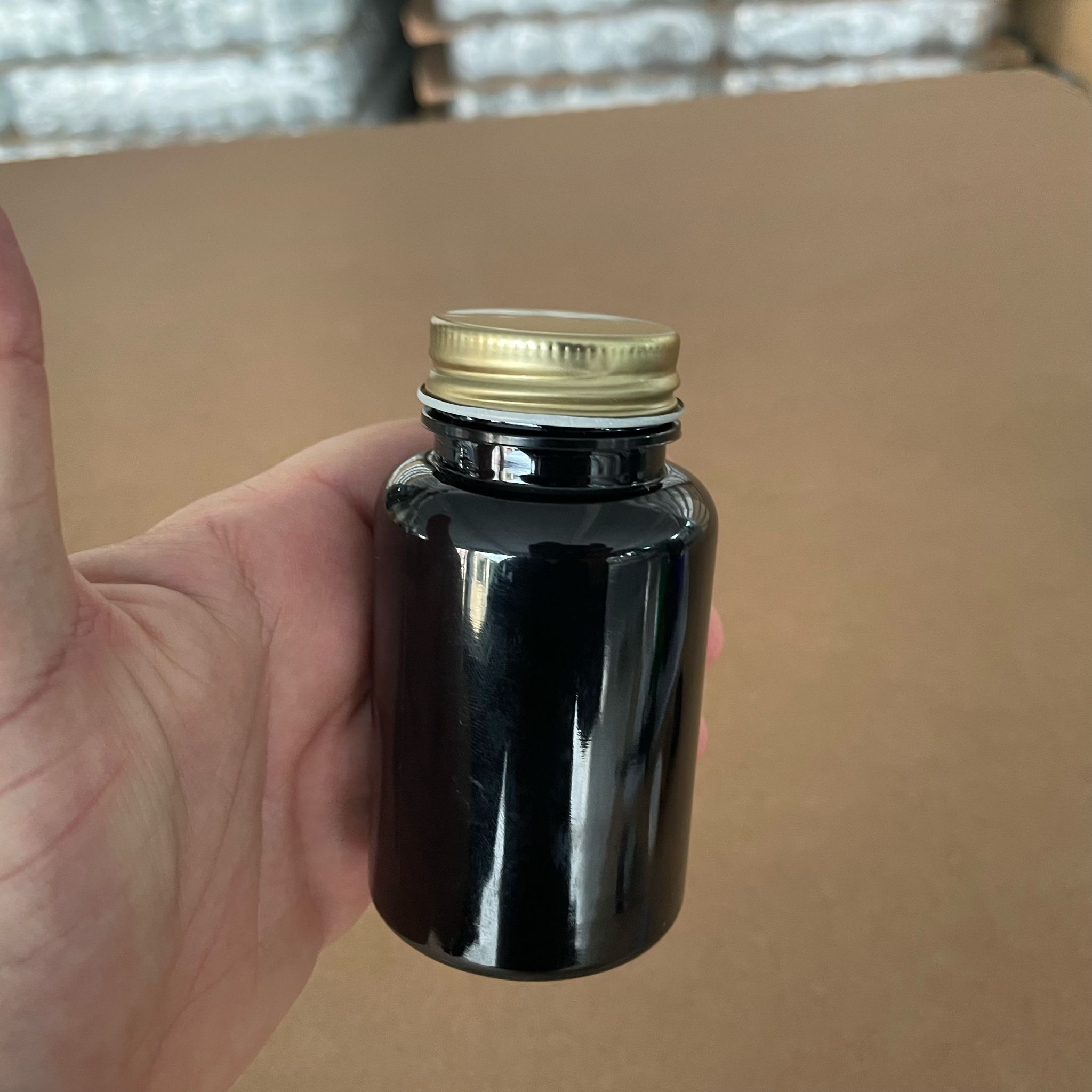 150 CC SİYAH PET TABLET ŞİŞESİ - GOLD METAL KAPAKLI - 150 ML KAPSÜL KUTUSU - İLAÇ ŞİŞESİ - MEDİKAL HAP ŞİŞESİ - FARMASÖTİK KAVANOZ