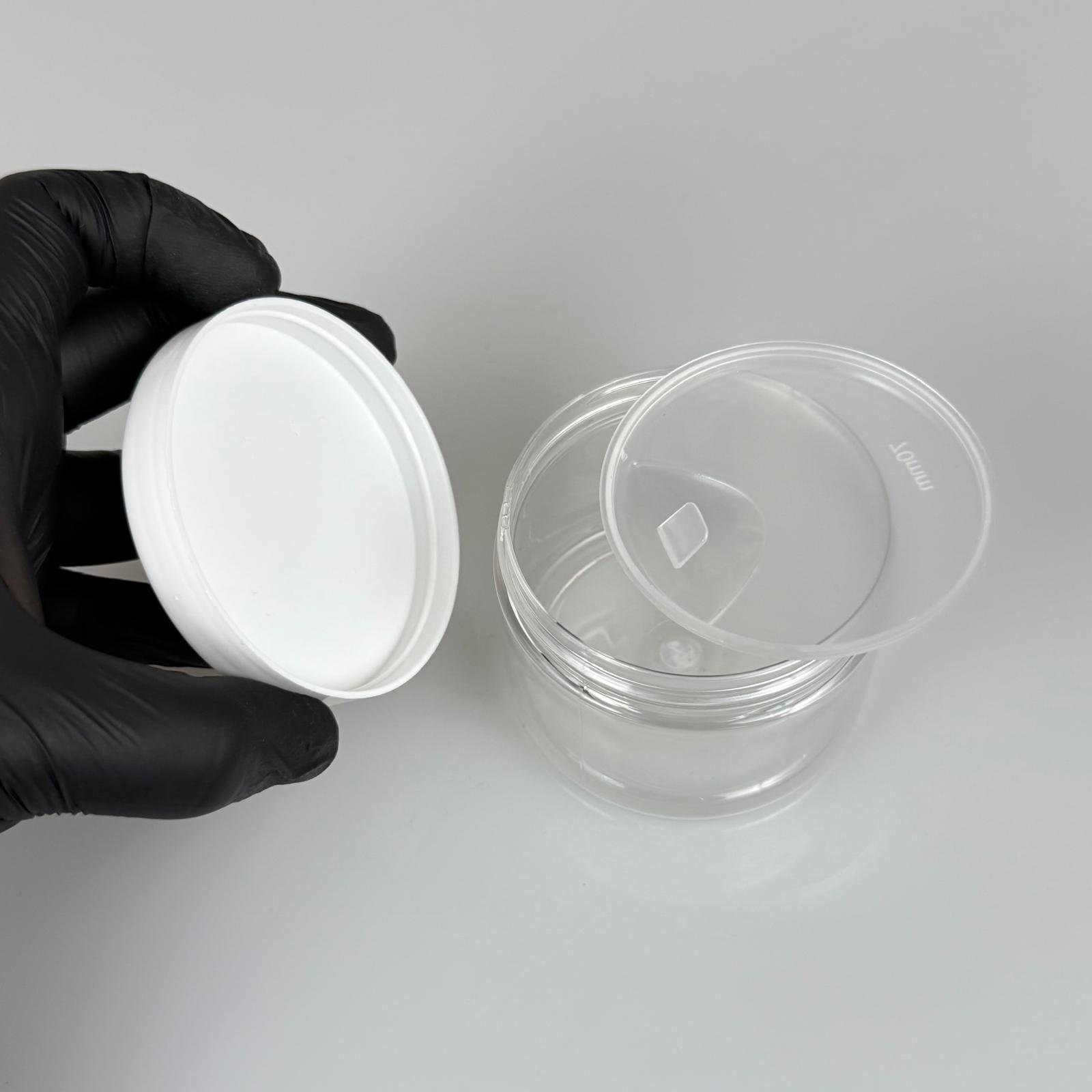 150 ML SERT PET KAVANOZ + BEYAZ PLASTİK KAPAK + İÇ TIPA - 150 CC KALIN ŞEFFAF PLASTİK KAVANOZ BEYAZ PLASTİK KAPAKLI İÇ TIPALI TAKIM - KREM KAVANOZLARI
