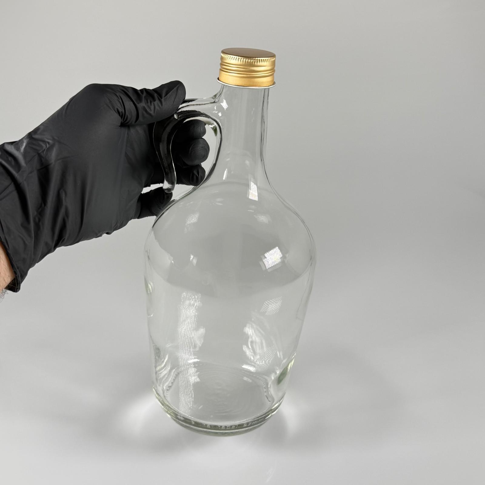 1500 CC KULPLU GALON ŞİŞE - 1,5 LİTRE GALON KULPLU CAM ŞİŞE - GOLD METAL ALÜMİNYUM KAPAKLI