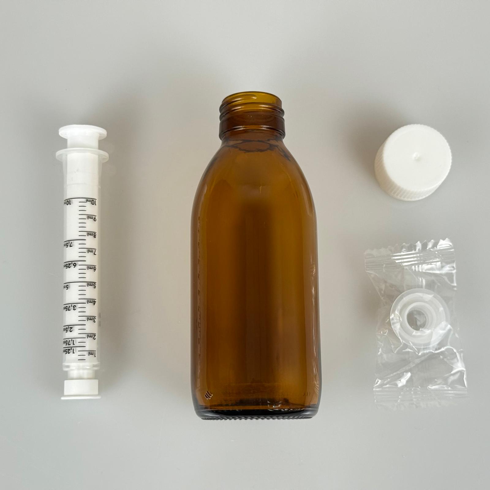 160 ML CAM ECZA ŞİŞESİ + 10 ML DOZAJ PİPETİ + DOZAJ TIPASI + CONTALI PLASTİK KAPAK TAKIM