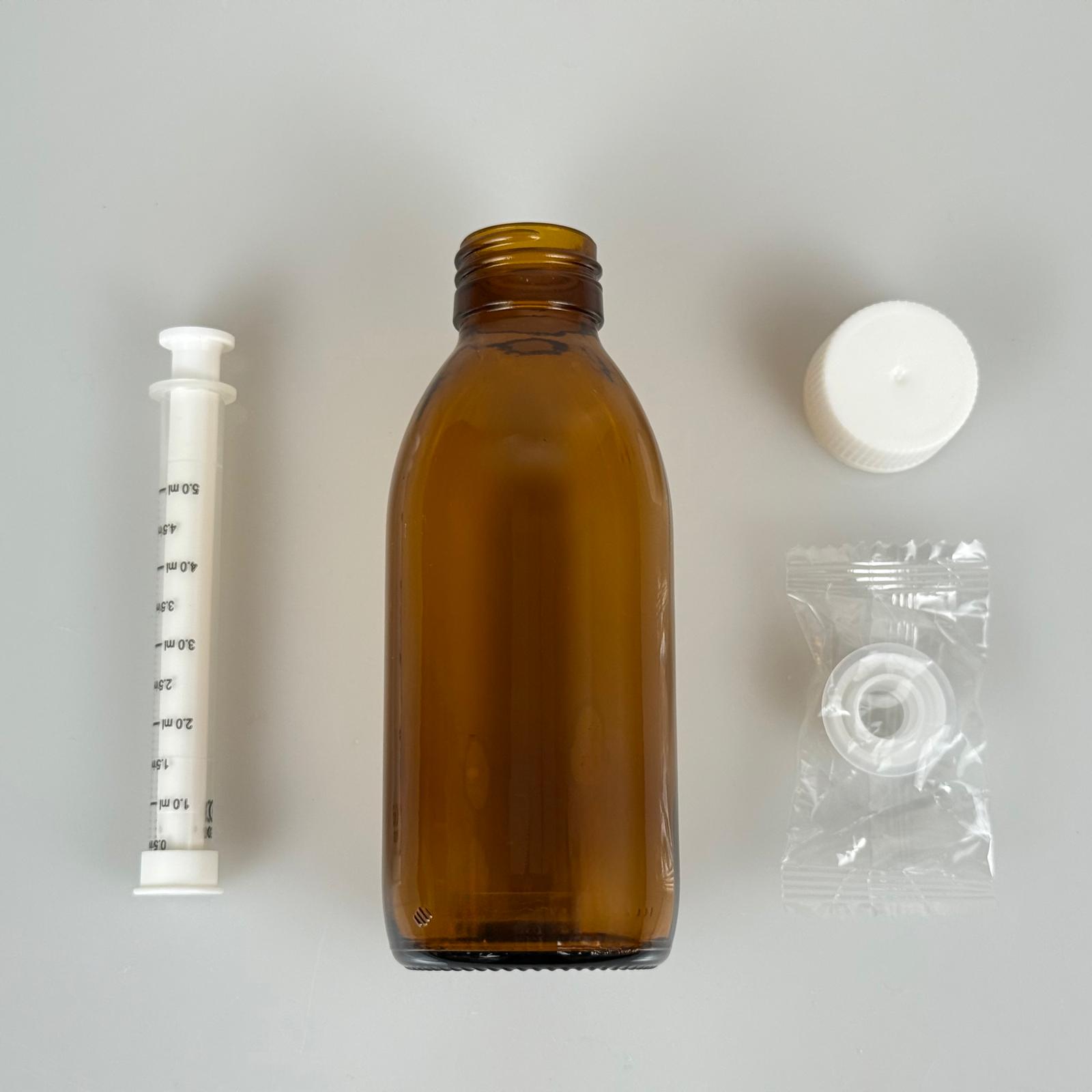 160 ML CAM ECZA ŞİŞESİ + 5 ML DOZAJ PİPETİ + DOZAJ TIPASI + CONTALI PLASTİK KAPAK TAKIM