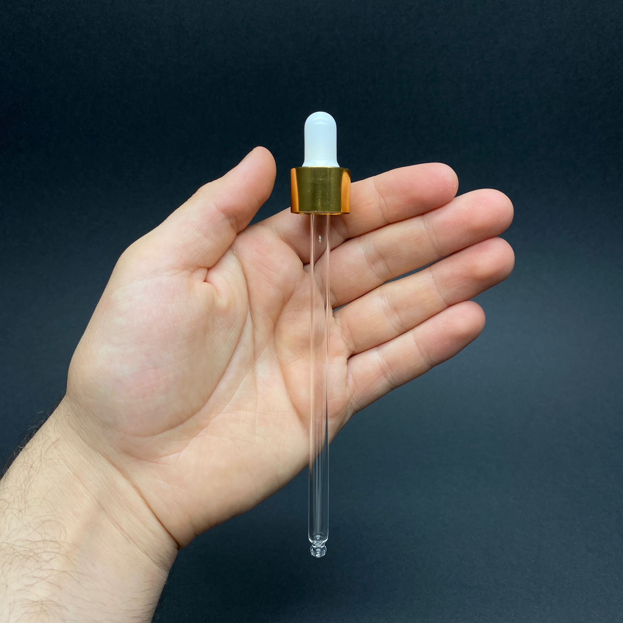 18 MM CAM DAMLALIK TAKIM - PARLAK BEYAZ EMZİK+DELİKLİ GOLD METAL KAPAK+CAM PİPET - TAKILACAĞI ŞİŞE EN AZ 14 CM OLMALI